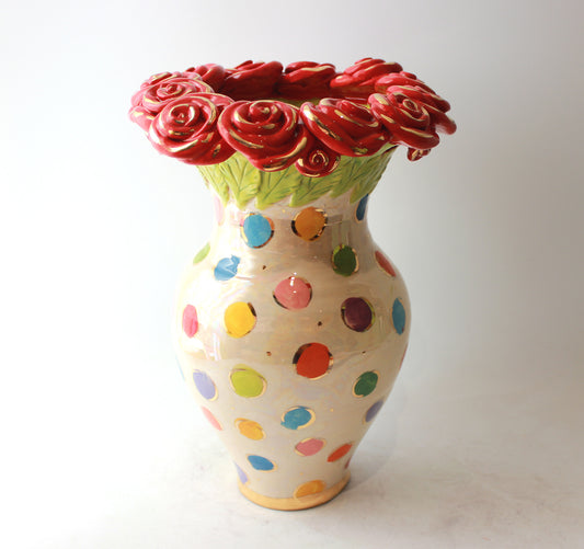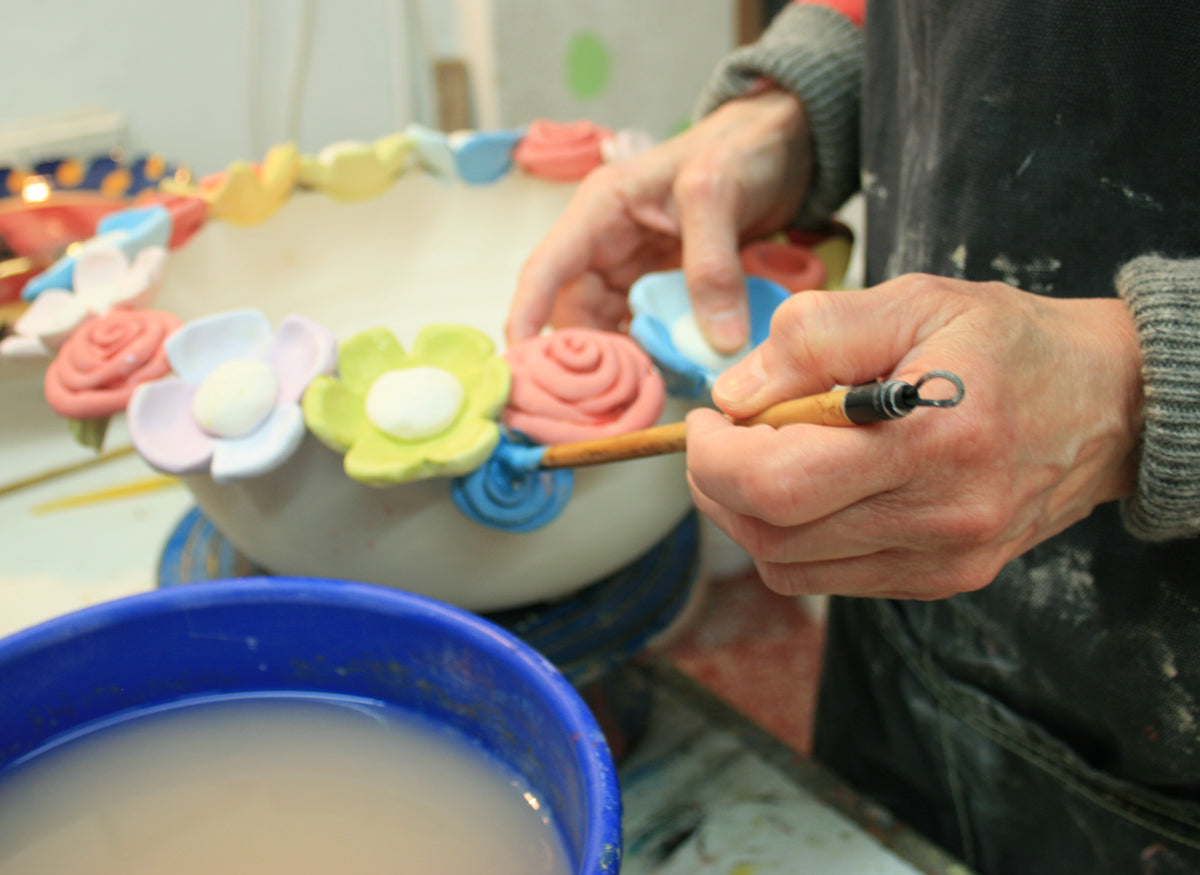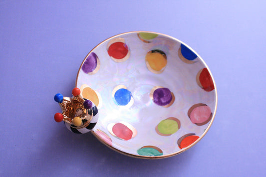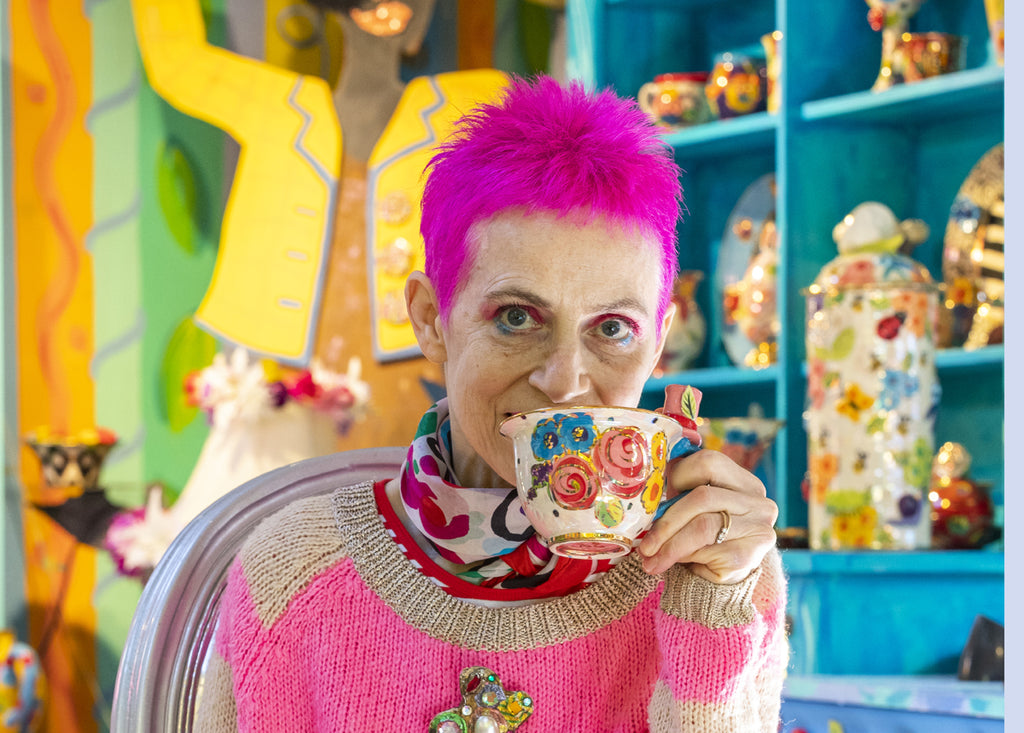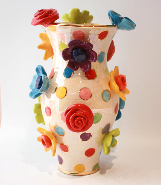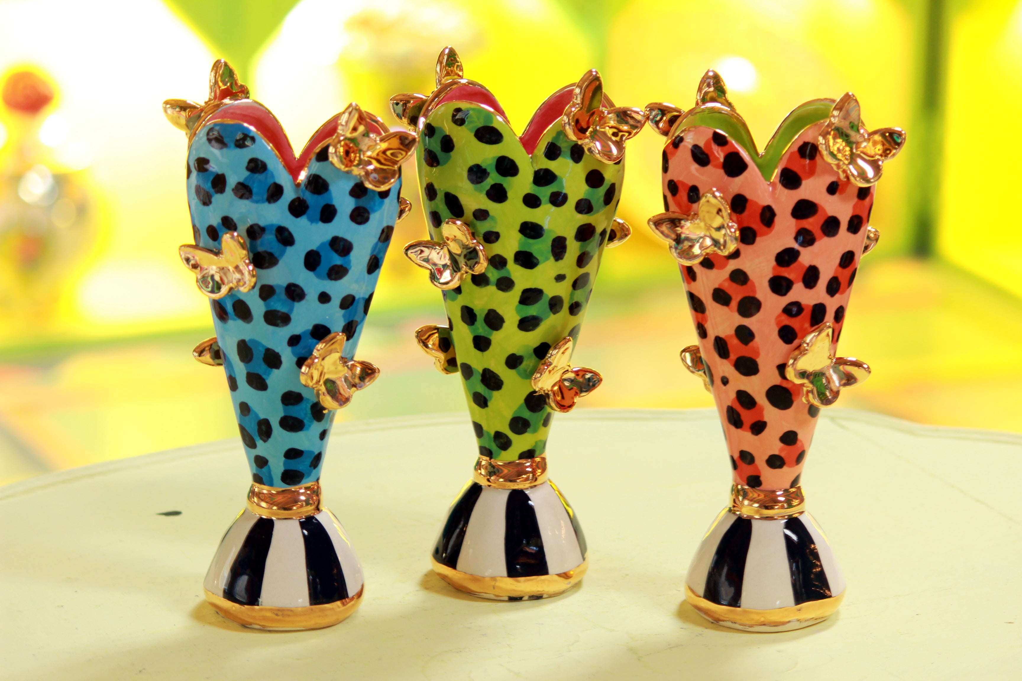 Mary Rose Young makes her "Alice in Wonderland" range of pottery in her workshop in The Forest of Dean (UK) with her small team. She throws all the pieces and concentrates on making the shapes just a bit more than she does decorating. A look at comments on her Facebook page give an inkling as to how breathtaking her work is when seen "in the flesh". Her shapes are curvy and traditional with brightly coloured designs that betray that the artist's desire to make every corner as eye catching as possible. All pieces are of course 100% hand made and your order will almost certainly be Custom Made meaning that we can accommodate requests for short personal messages to be added on the base. However be advised that because of this orders may take 2-3 weeks to arrive, except if ordered from the "Available Gallery Products in Stock" section of the website...