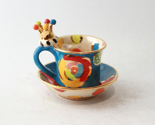 Crown Handled Demi Tasse and Saucer in Gold New Rose Blue