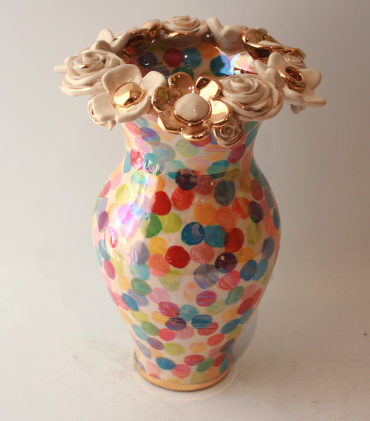 Large Multiflower Encrusted Vase in Buble