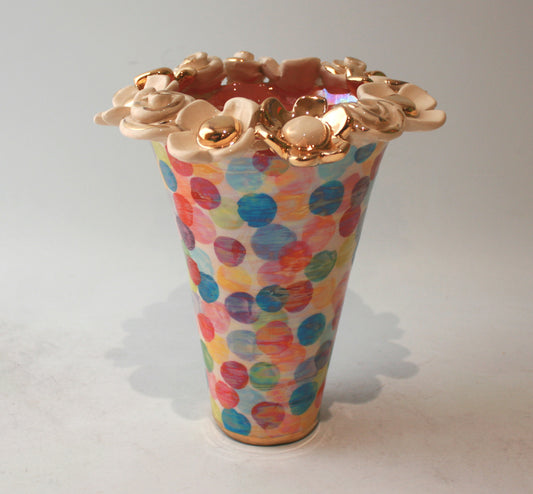 Multiflower Encrusted Flared Vase in Buble