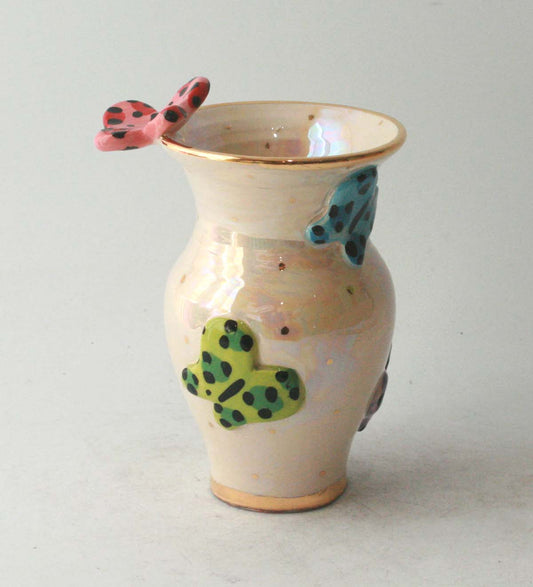 Tiny Butterfly Encrusted Vase in Iridescent White