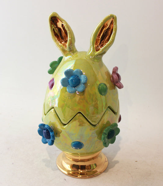 Easter Egg in Green with Ears Daisies and Bobbles