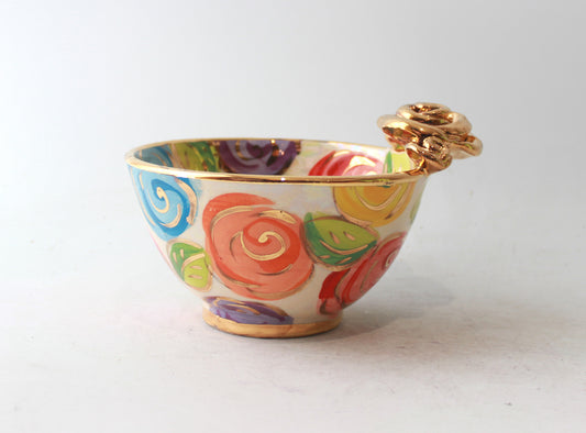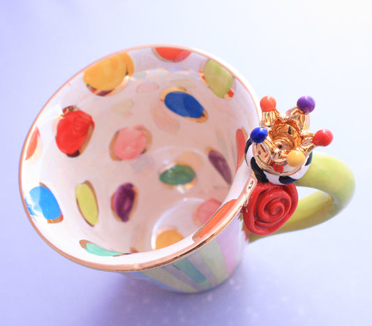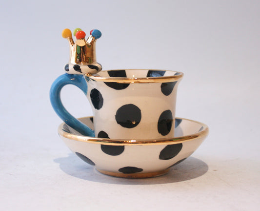 Crown Handled Demi Tasse and Saucer in Polka