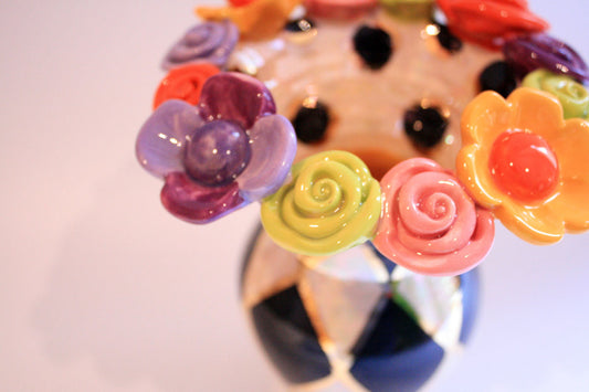 Large Multiflower Encrusted Vase Chequer