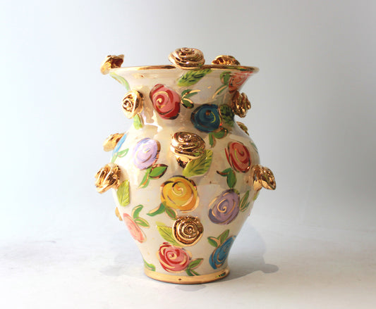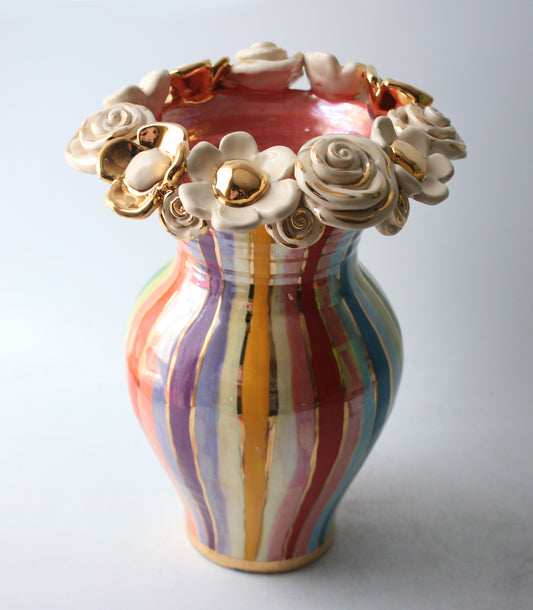 Large Multiflower Encrusted Vase in Lustred Stripe