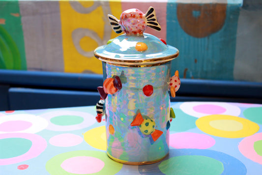 New Shape Large Rose Studded Mug in Iridescent White with Gold Dots and Lady Gaga Handle