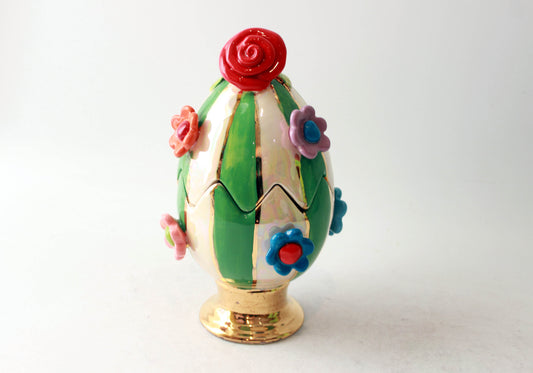 Multiflower Studded Easter Egg Green and White Stripe