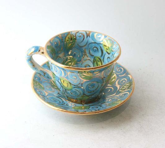 Cup and Saucer in Blue Rosebush