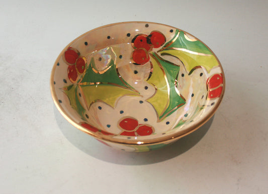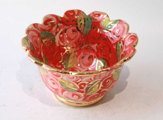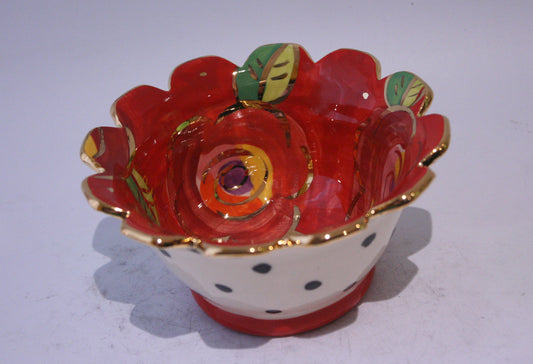 Ice Cream Bowl Gold New Rose Red and Polka Dots