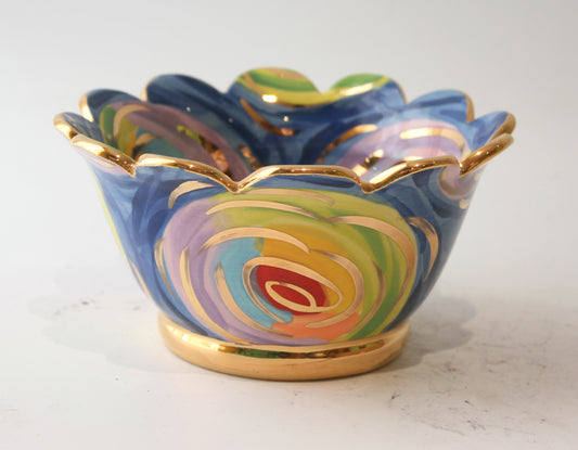 Ice Cream Bowl Gold New Rose Blue with Polka Dots