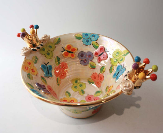 Medium Crown Edged Serving Bowl in Petit Fleur with Butterflies