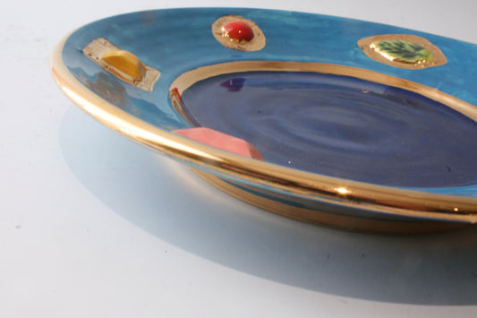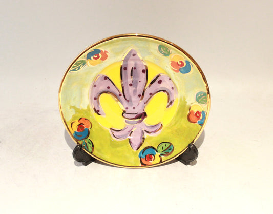 Mardi Gras Tea Plate in Green with Polka Fleur de Lys