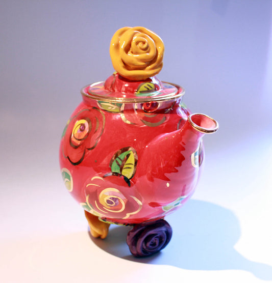 Rose Footed Teapot New Red New Rose