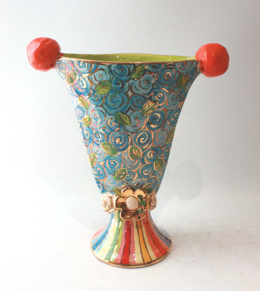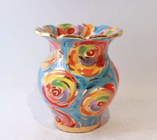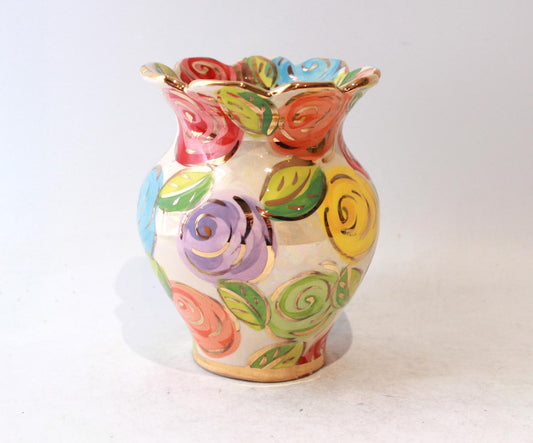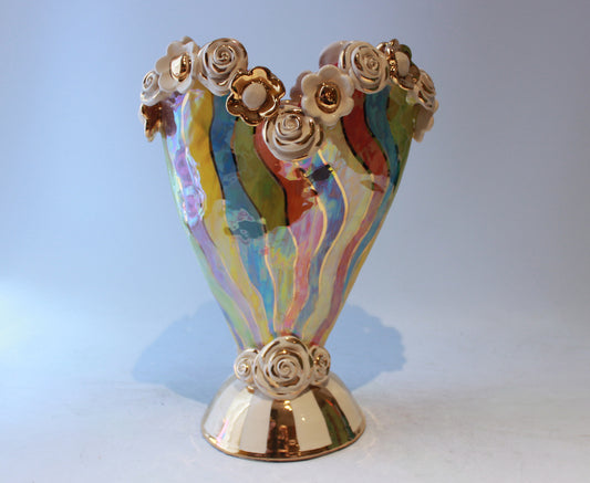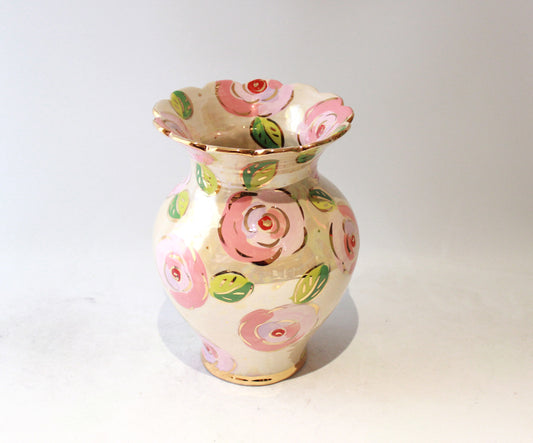 Large Fat Rose Studded Vase with Fluted Edge in Lustred Stripe