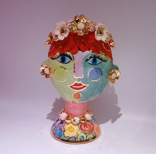 Large Encrusted Face Vase "Jade"