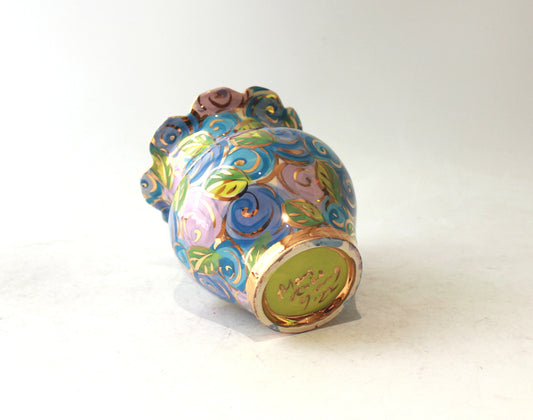 Large Encrusted Heart Vase Swirly Psychedelic Stripes
