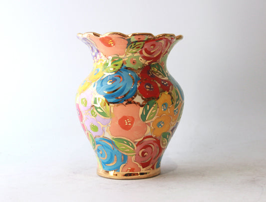 Fluted Small Fat Vase in Pastel Blooms