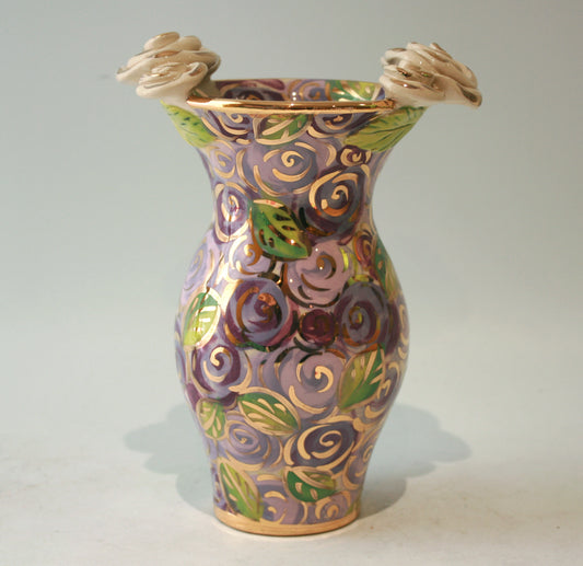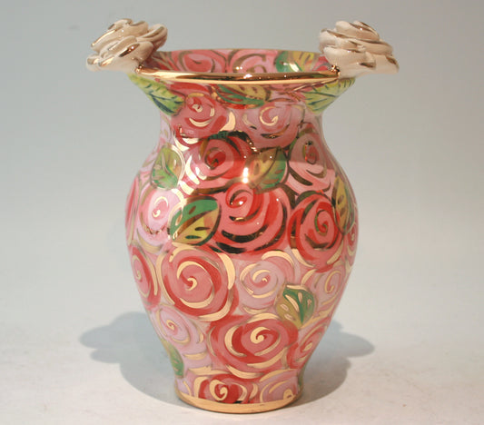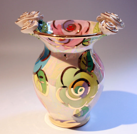Rose Encrusted "Cauldron" Vase Lustred Stripe