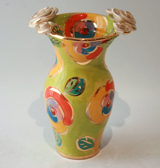 Small Rose Edged Vase in Gold New Rose on Lime Green