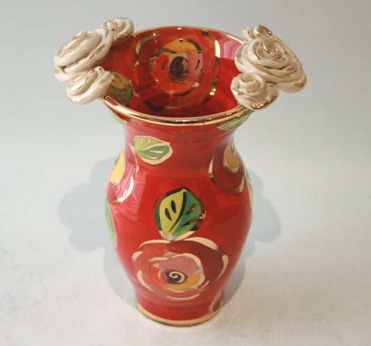 Rose Encrusted Flared Vase in Orange and Red Stripe