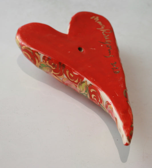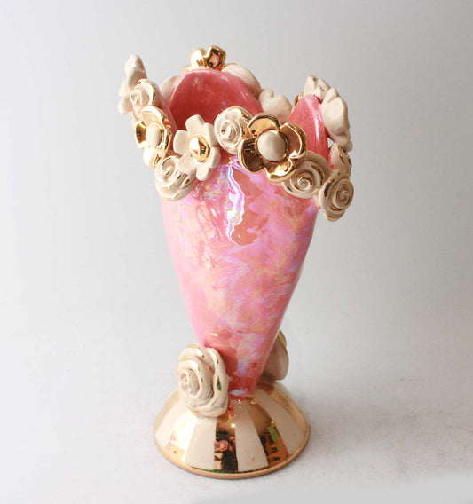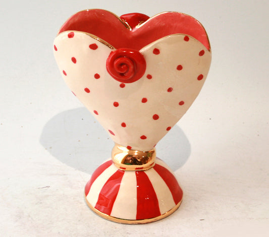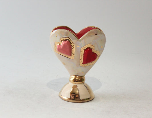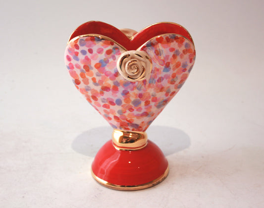 Baby Heart Vase in Gold New Rose on Pink Dots