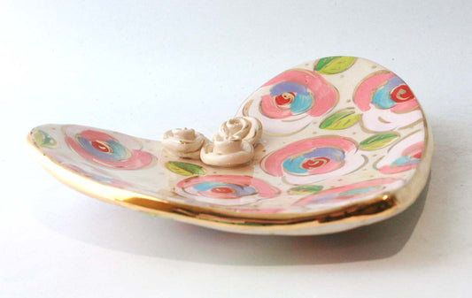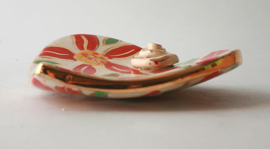 Large Heart Shaped Dish in Gold New Rose on Iridescent Pink
