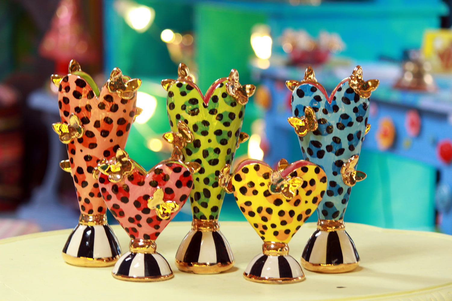 Leopards can be pink and hearts can be made of stone! This little posy vase has two golden butterflies and stands 5 inches tall. There are other colours you can request just make a note in the comments section if you'd prefer green blue or yellow.