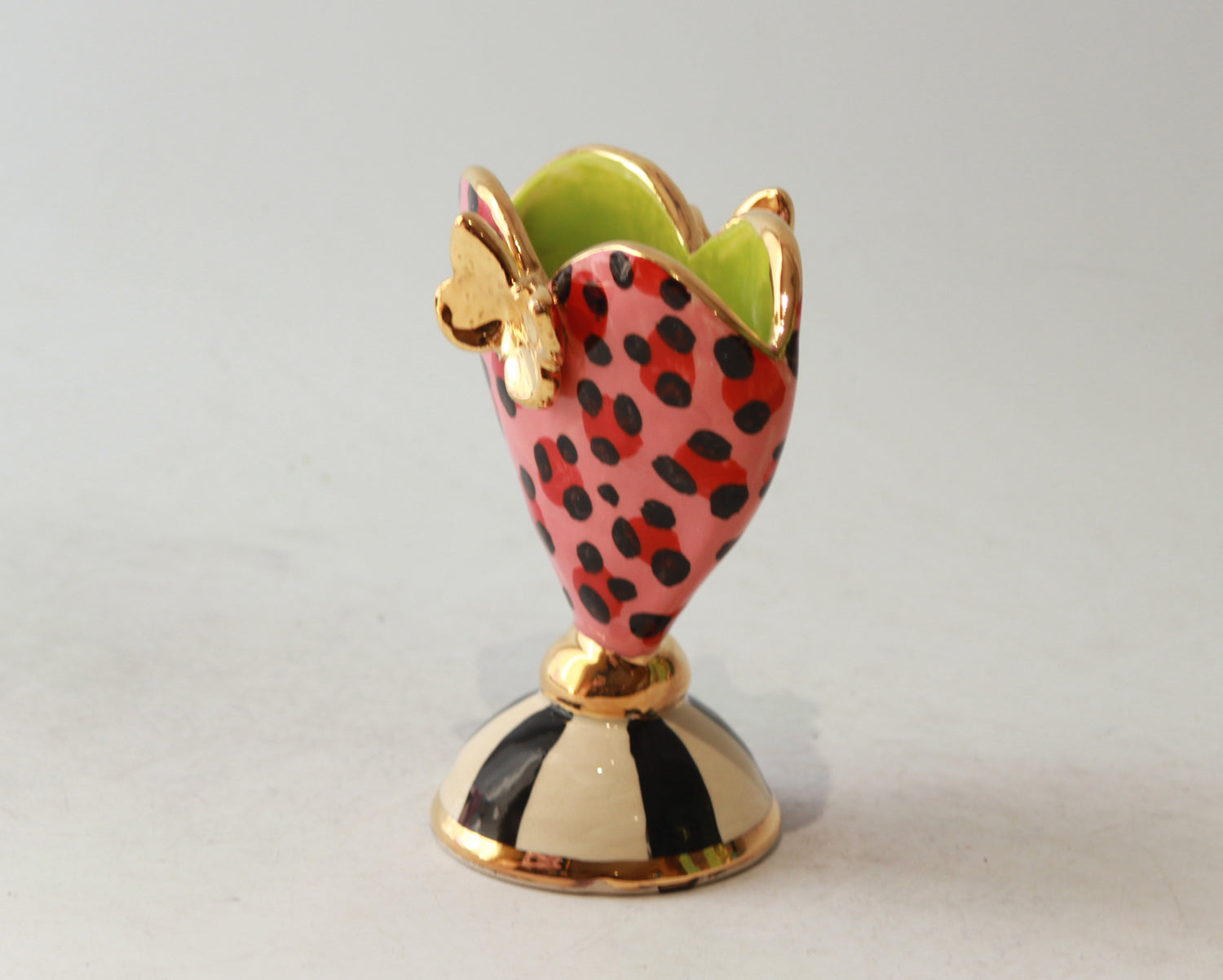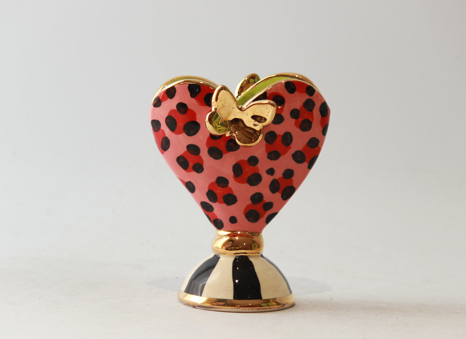 Butterfly Studded Baby Heart Vase Pink Leopard