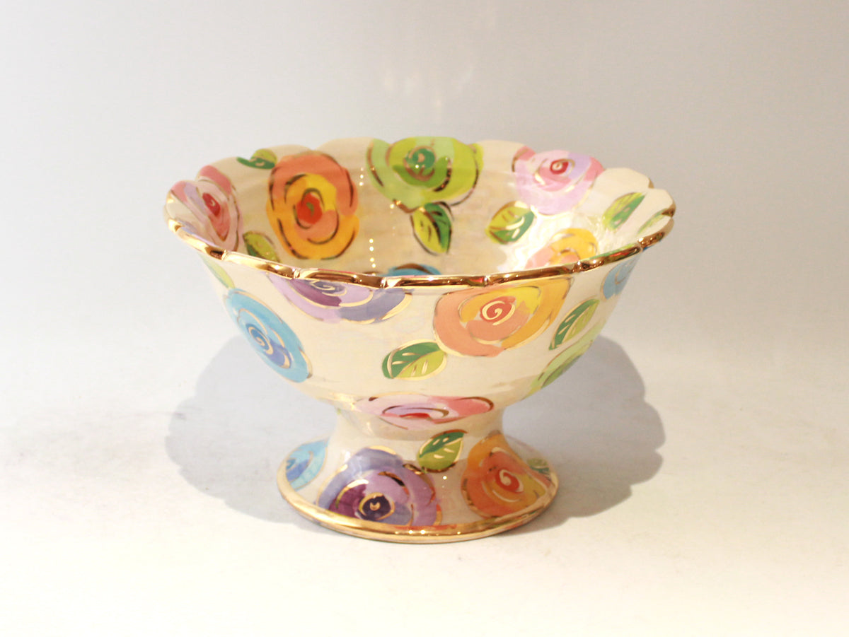 Fluted Punch Bowl in Mixed Pale Roses