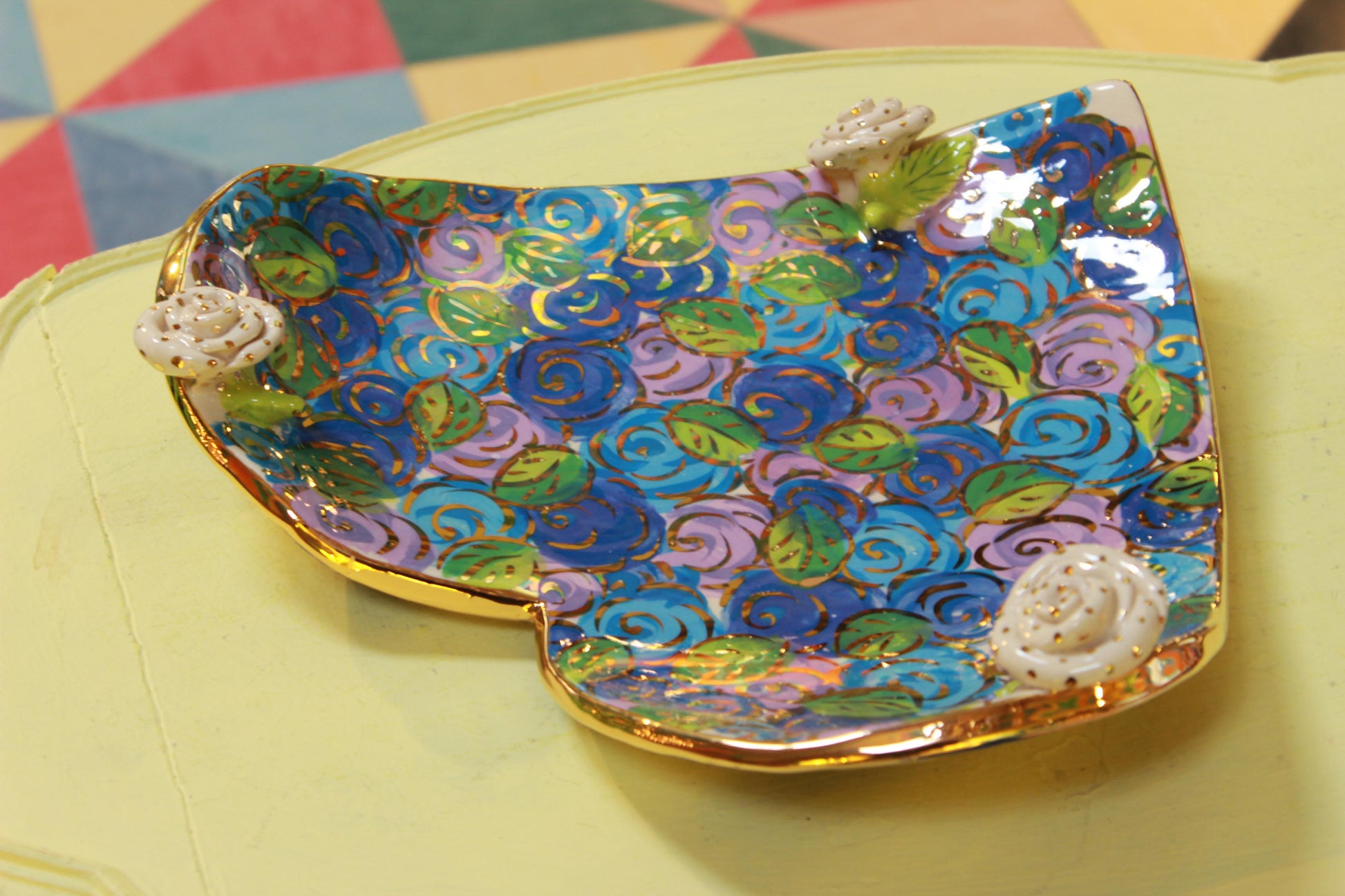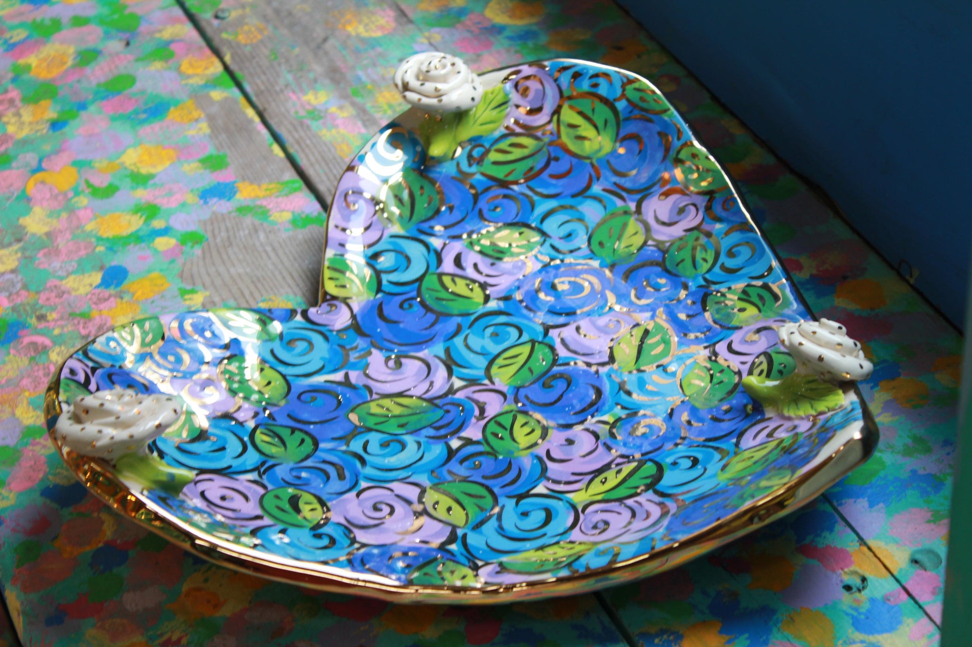 Giant Heart Shaped Dish Blue Rosebush