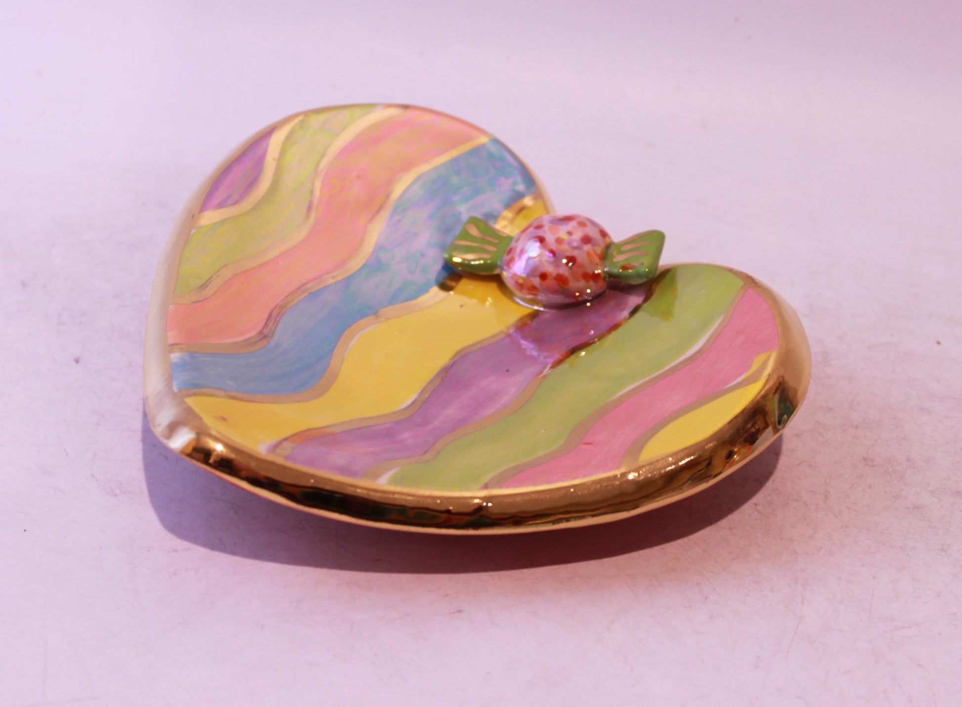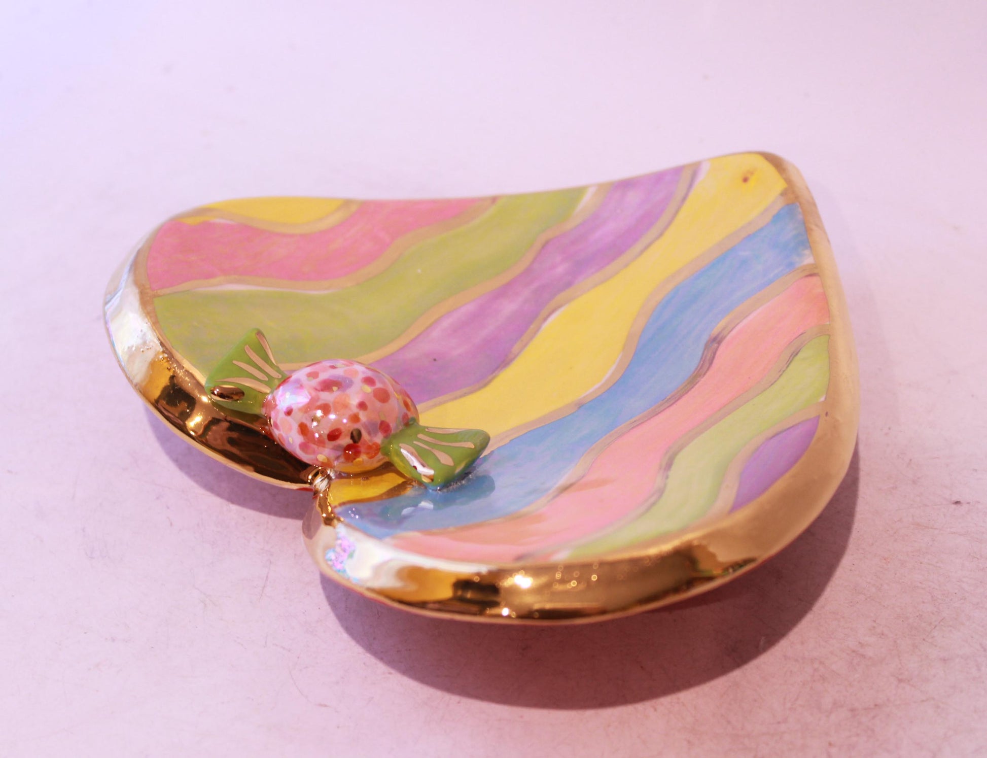 Sweetie is the English name, it's probably called a "Candy" in other countries. As children we would have dreamed about our chances of getting hold of a large bag of these and maybe those dreams have merged with what we find appealing even now. With the pastel wavy stripe design the piece looks like a fantasy candy store