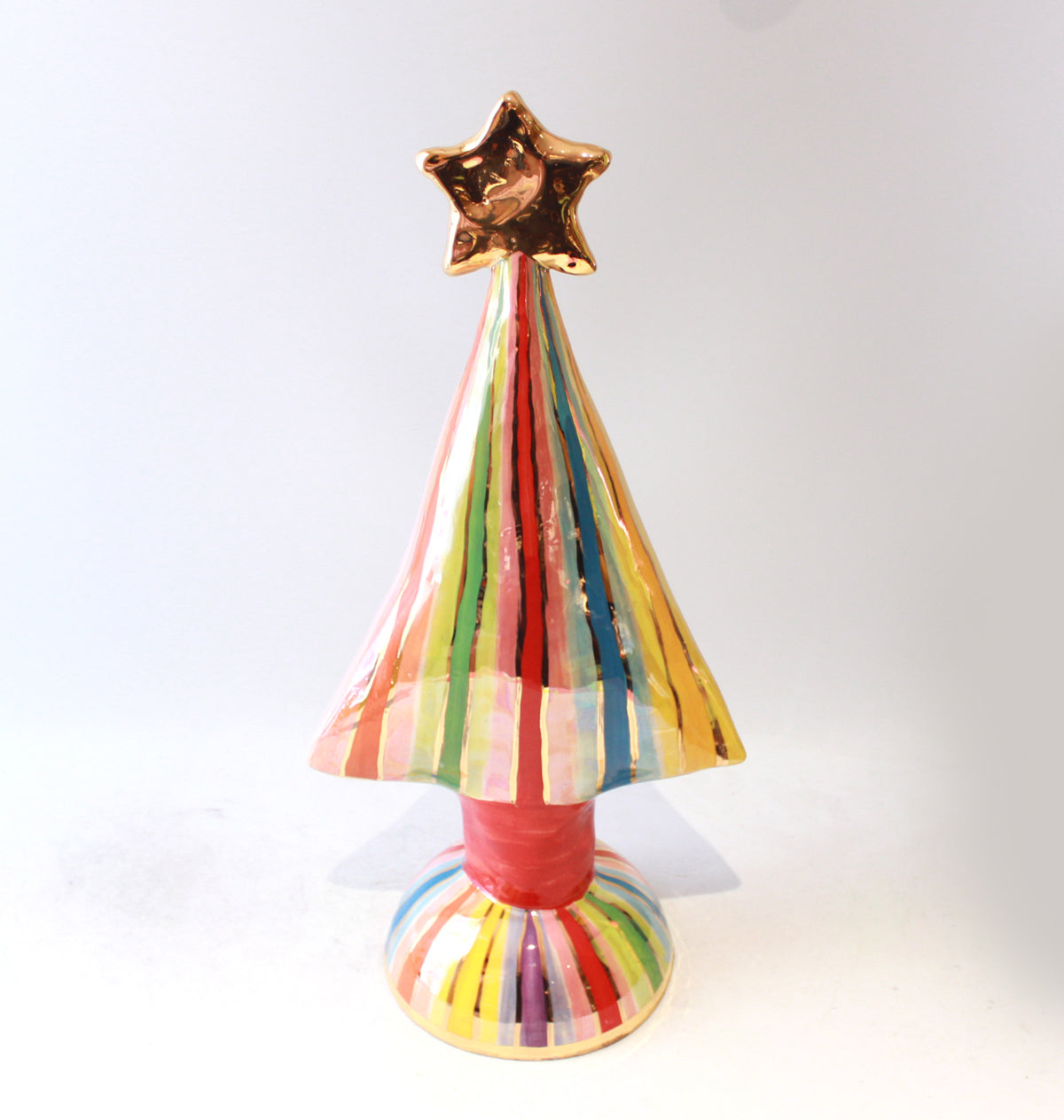Large Christmas Tree in Lustred Stripe with Gold Star