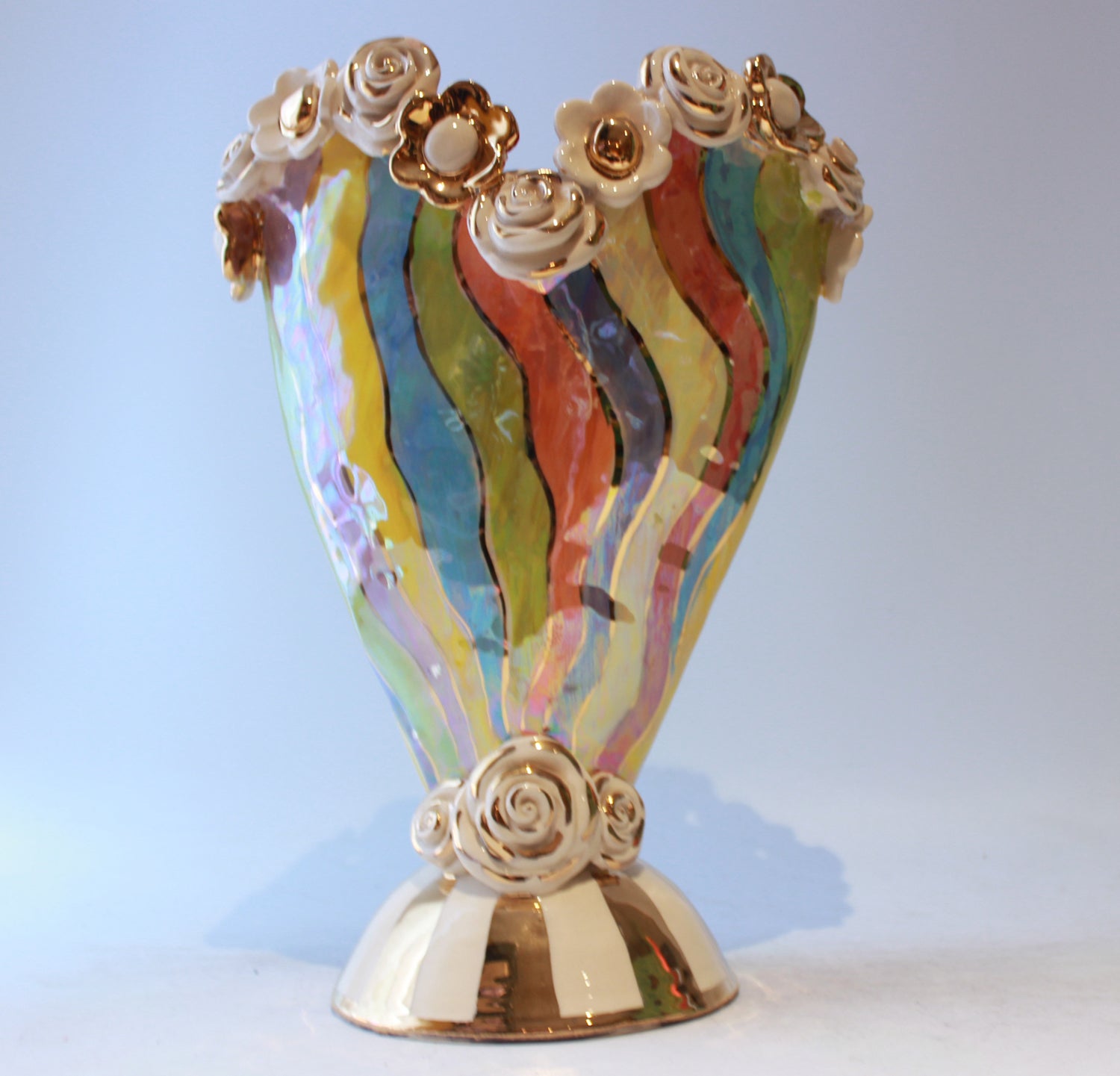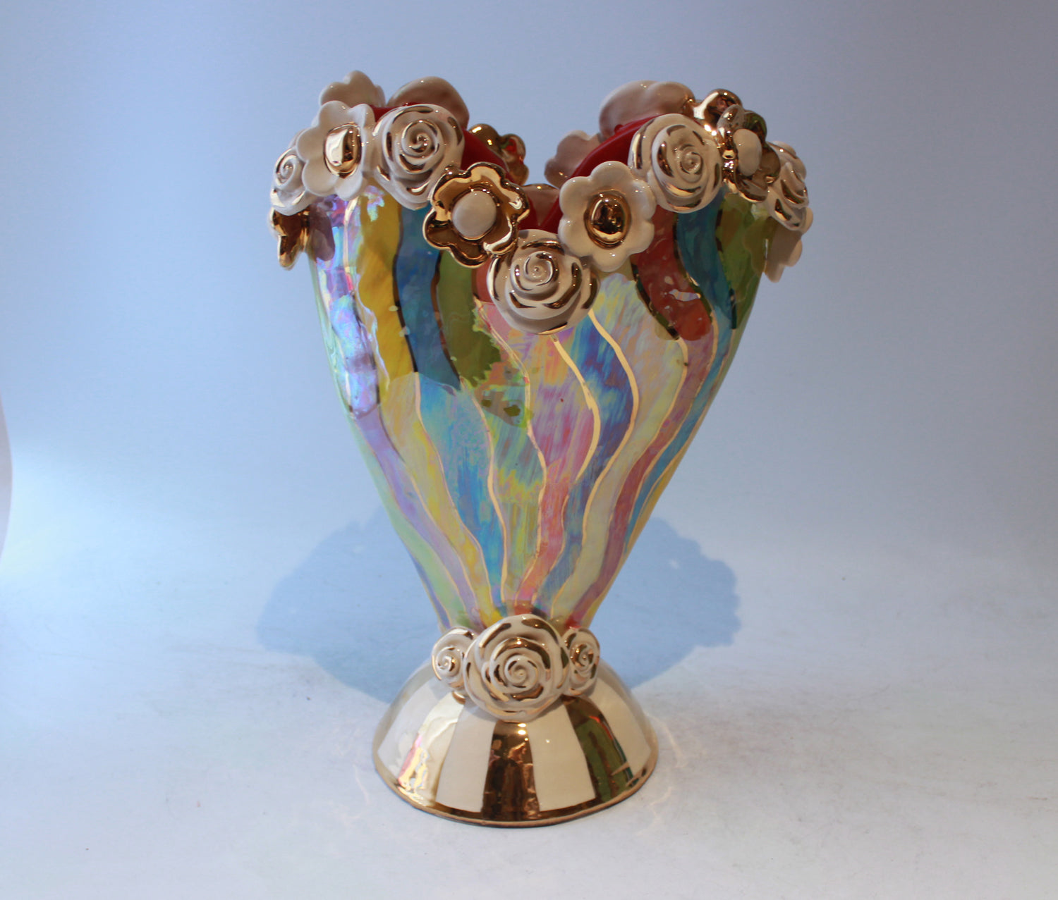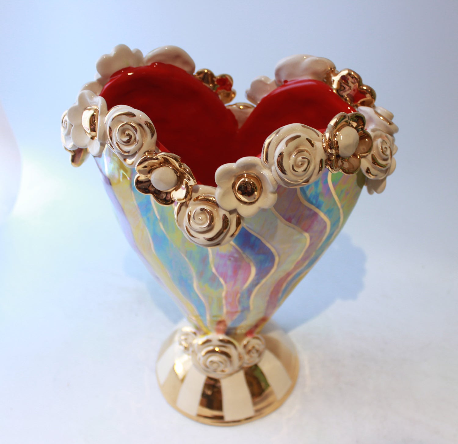 Large Encrusted Heart Vase Swirly Psychedelic Stripes