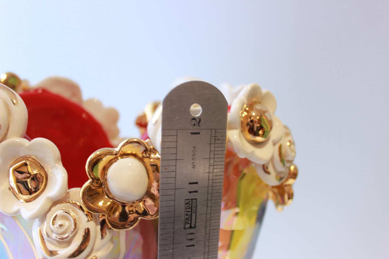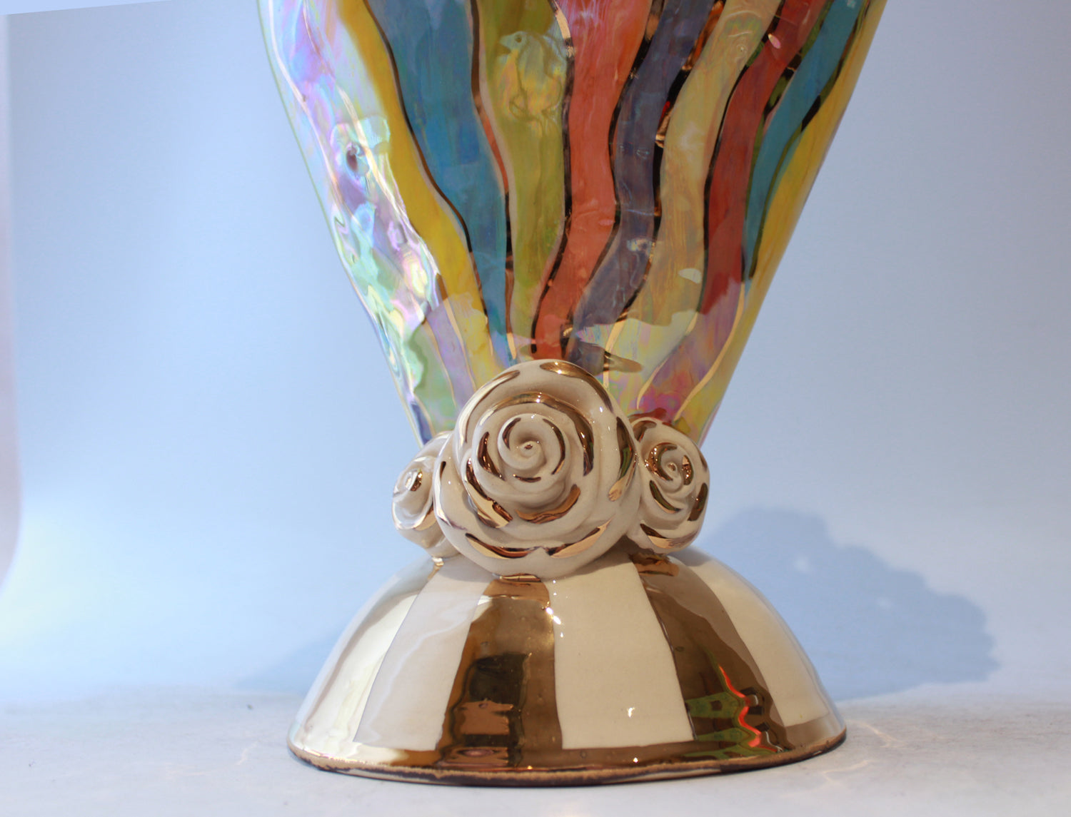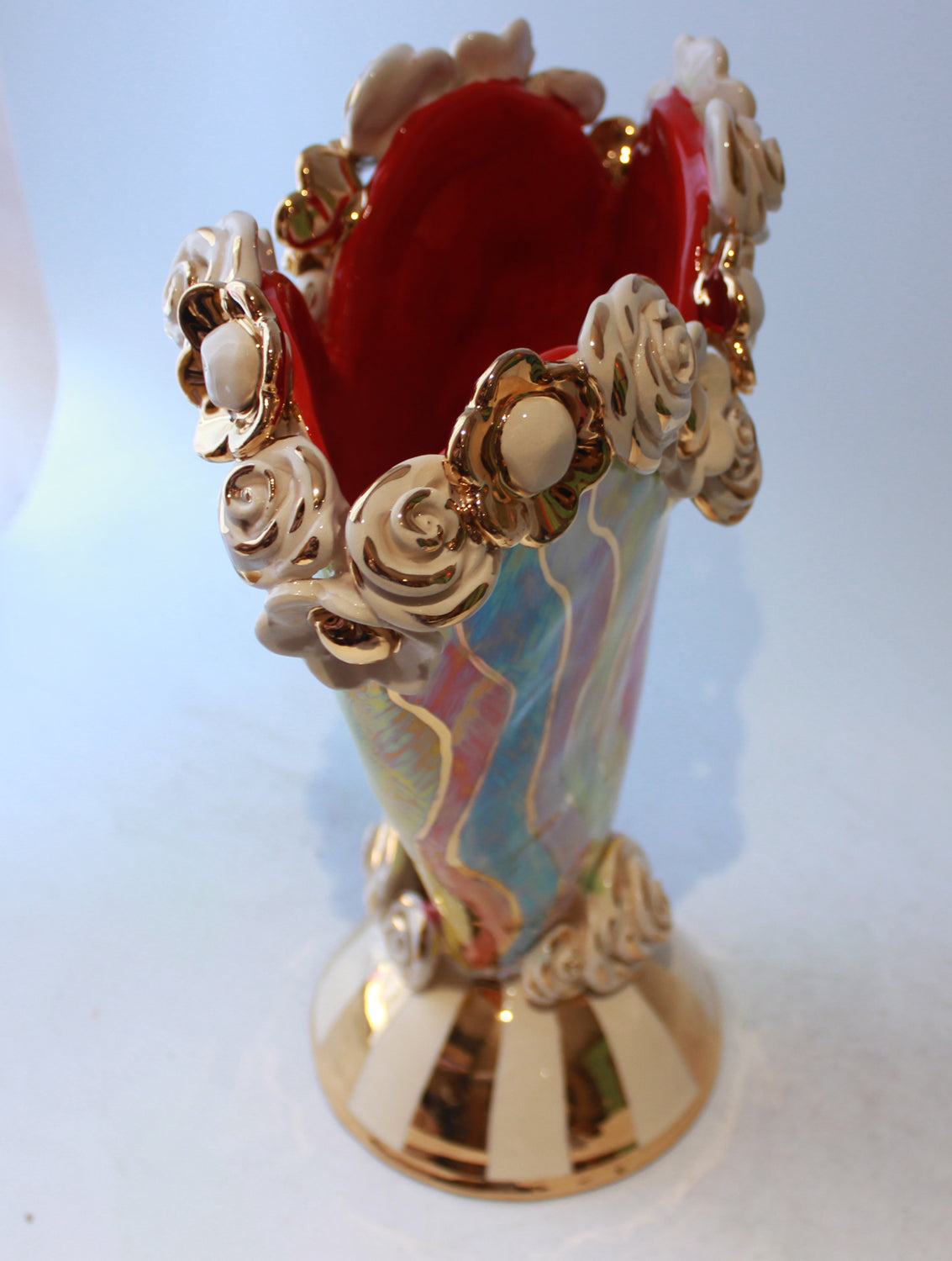 Large Encrusted Heart Vase Swirly Psychedelic Stripes