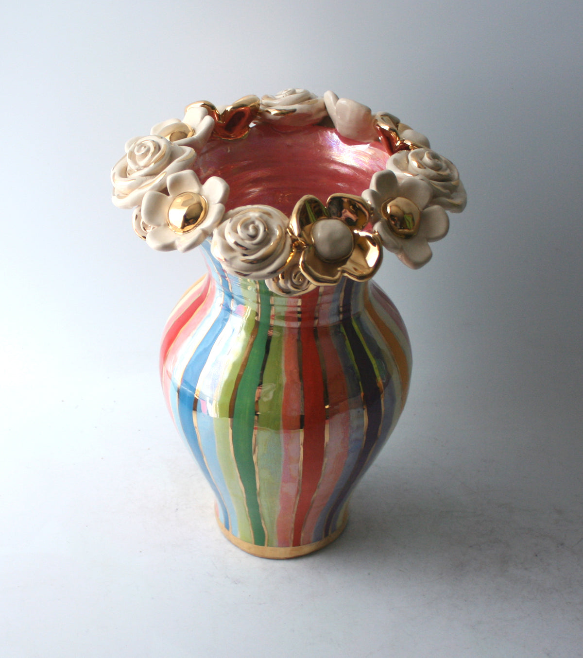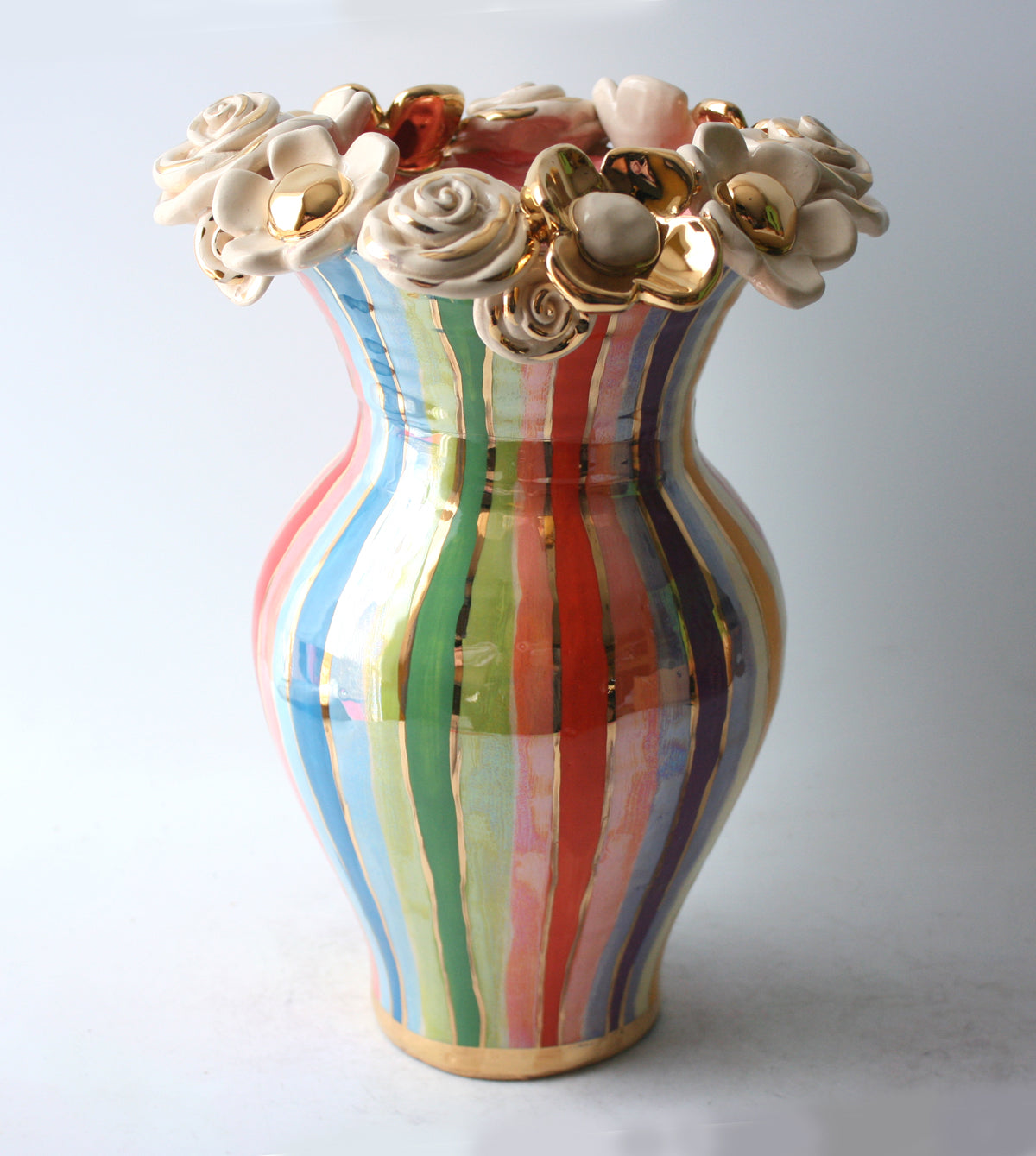 Large Multiflower Encrusted Vase in Lustred Stripe