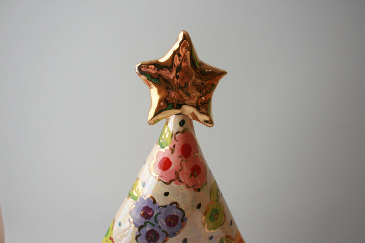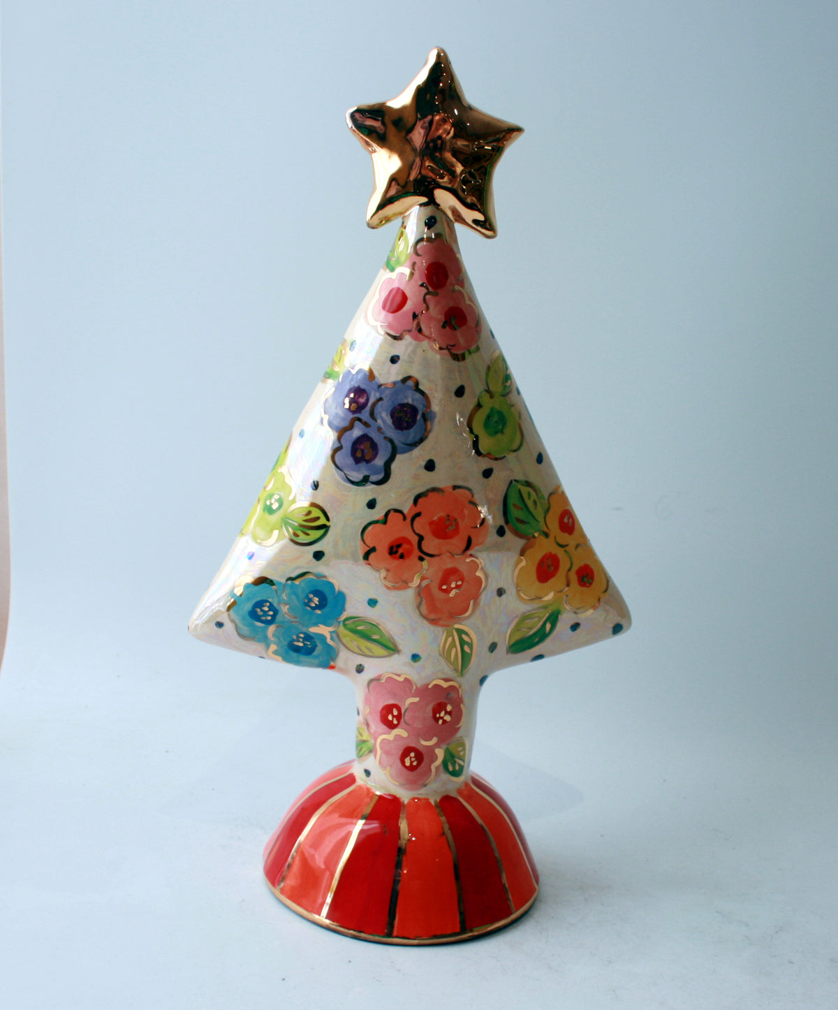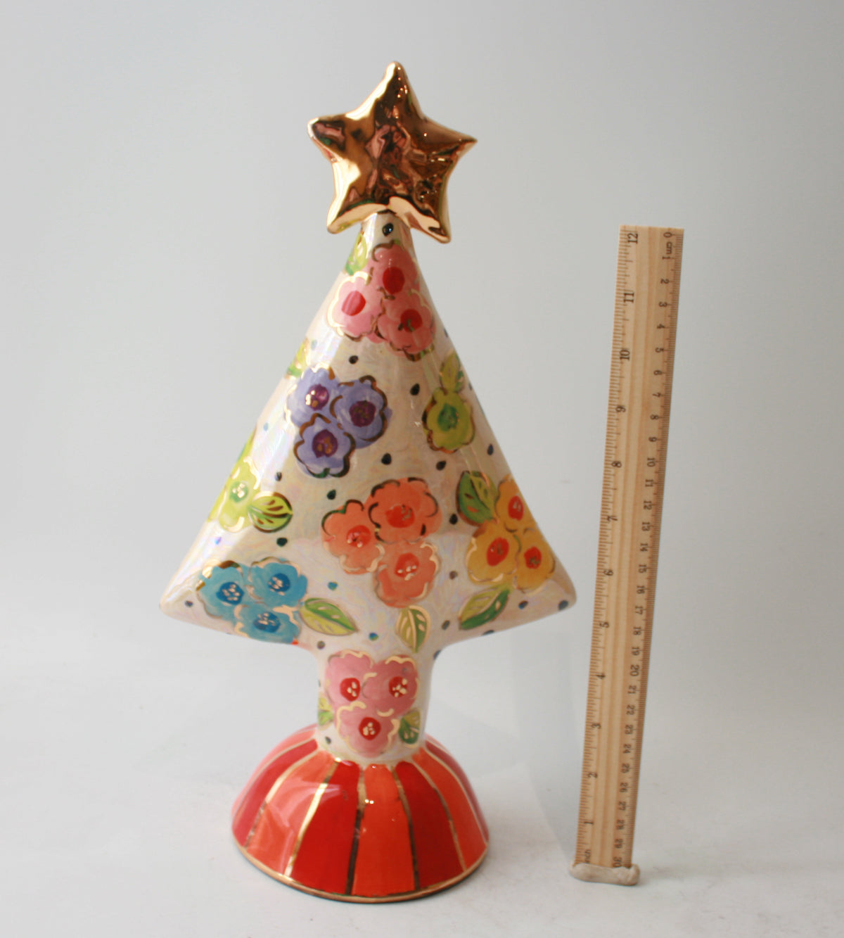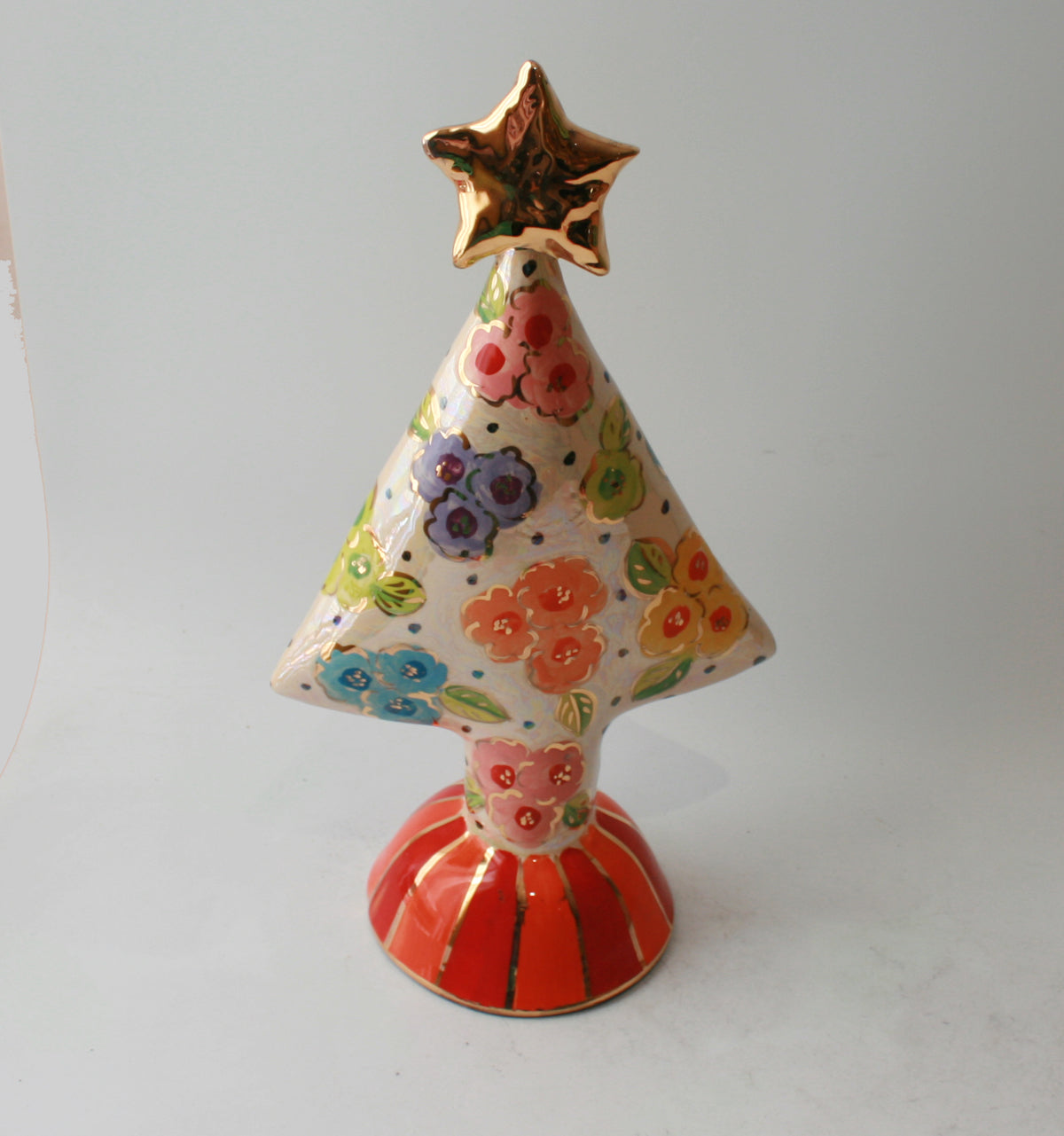 Almost 16 inches high Mary Rose's Christmas Tree is bedecked in Mary Rose's 2020 Floral Design, Petit Fleur. Another new combination, the iridescent red and orange stripe adorns the base. If it's decoration you're after.......