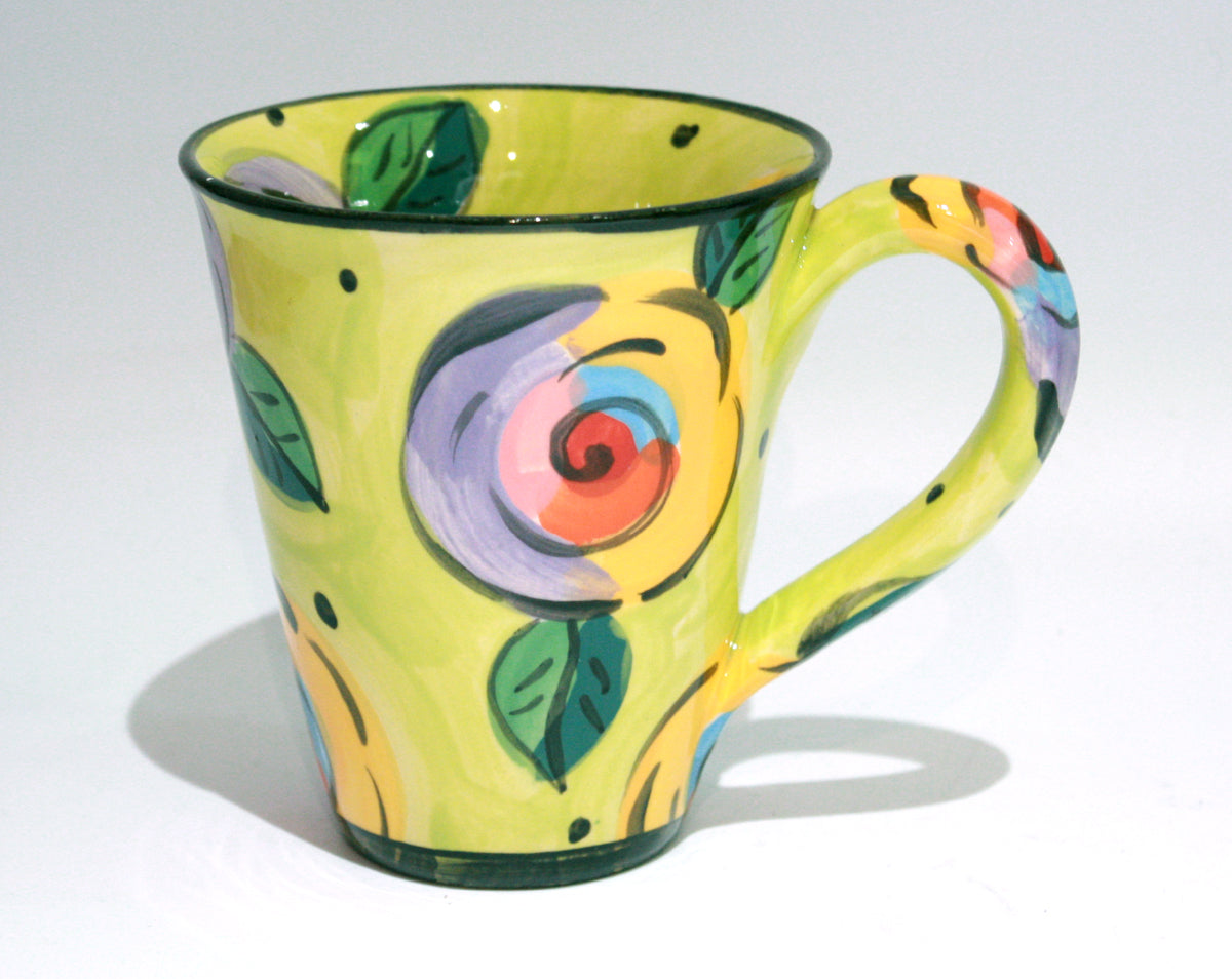 This Large Mug showcases an older design "New Rose" on a background of bright green which will definitely add a touch of fun to your morning tea! The price is for one only however you can see how beautiful they look in a set...if you'd like all 4 you would have to order them individually but make a note of your colour preferences!