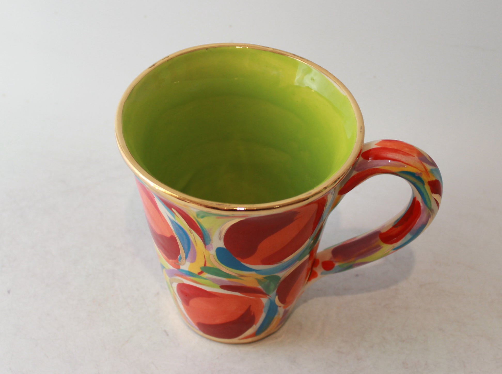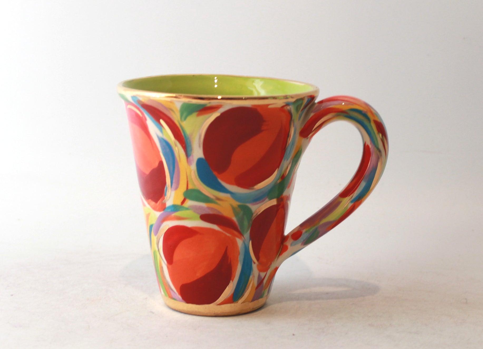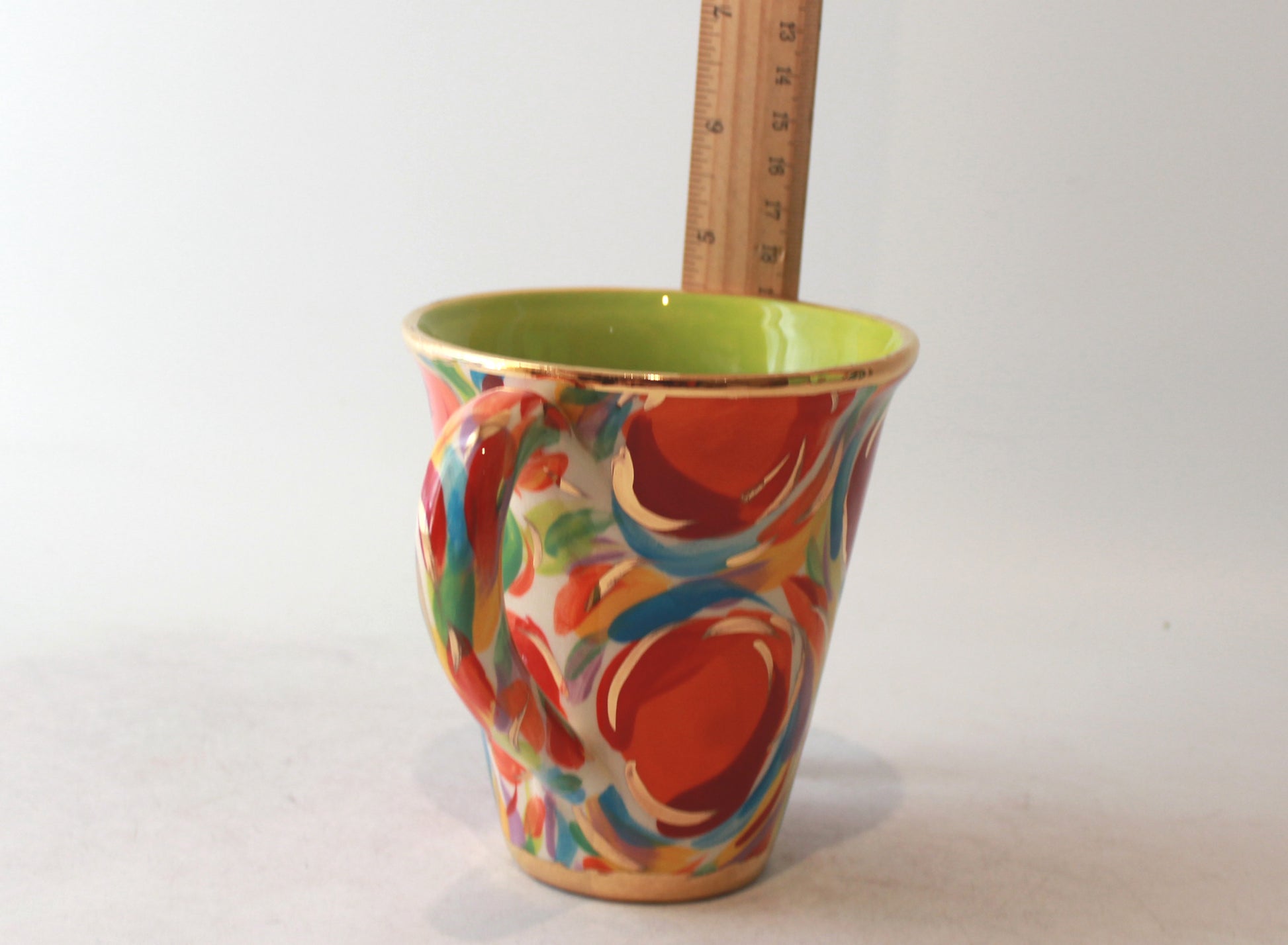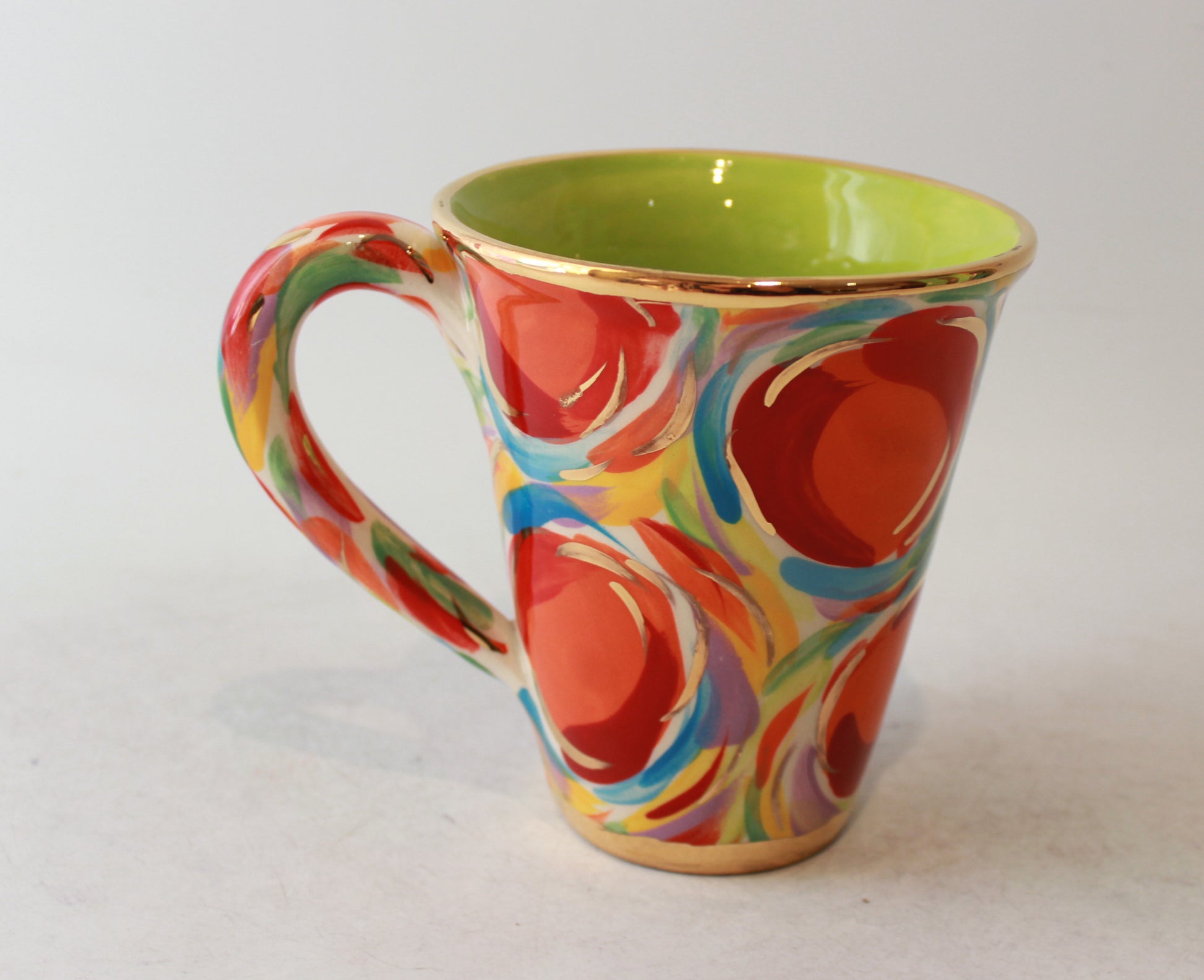 A design that takes its inspiration from Mary Rose's 1980's "Swirls" design, but is now known as "Eggs". The clever use of lines around and on top of the oval shapes gives a genuine sense of movement in the static decoration.A cup to treasure