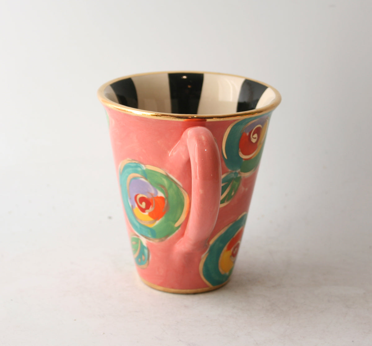 New Shape Large Mug in New Rose Pink with Black and White Stripes