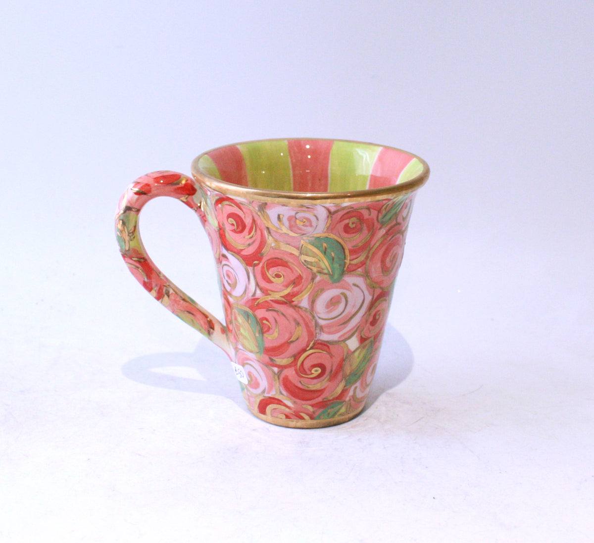 New Shape Large Mug in Pink Rosebush with Stripes