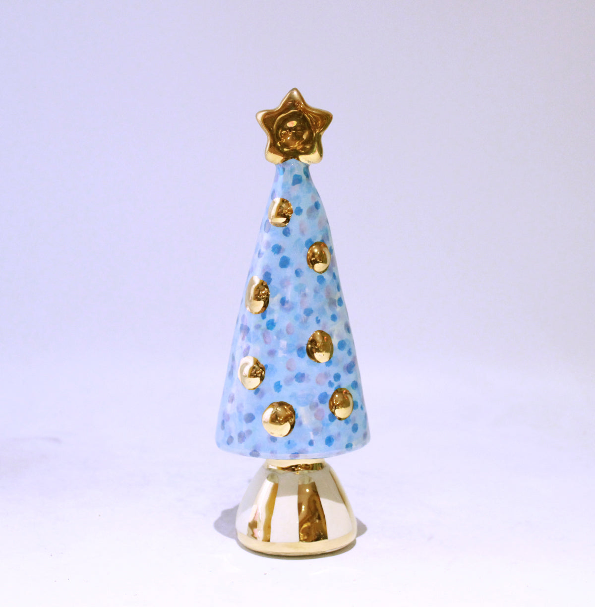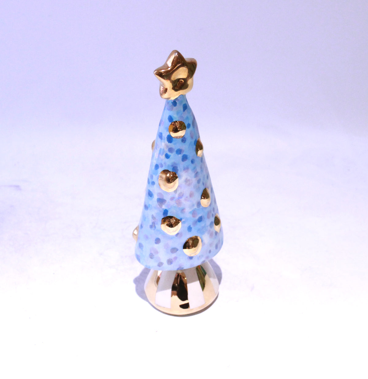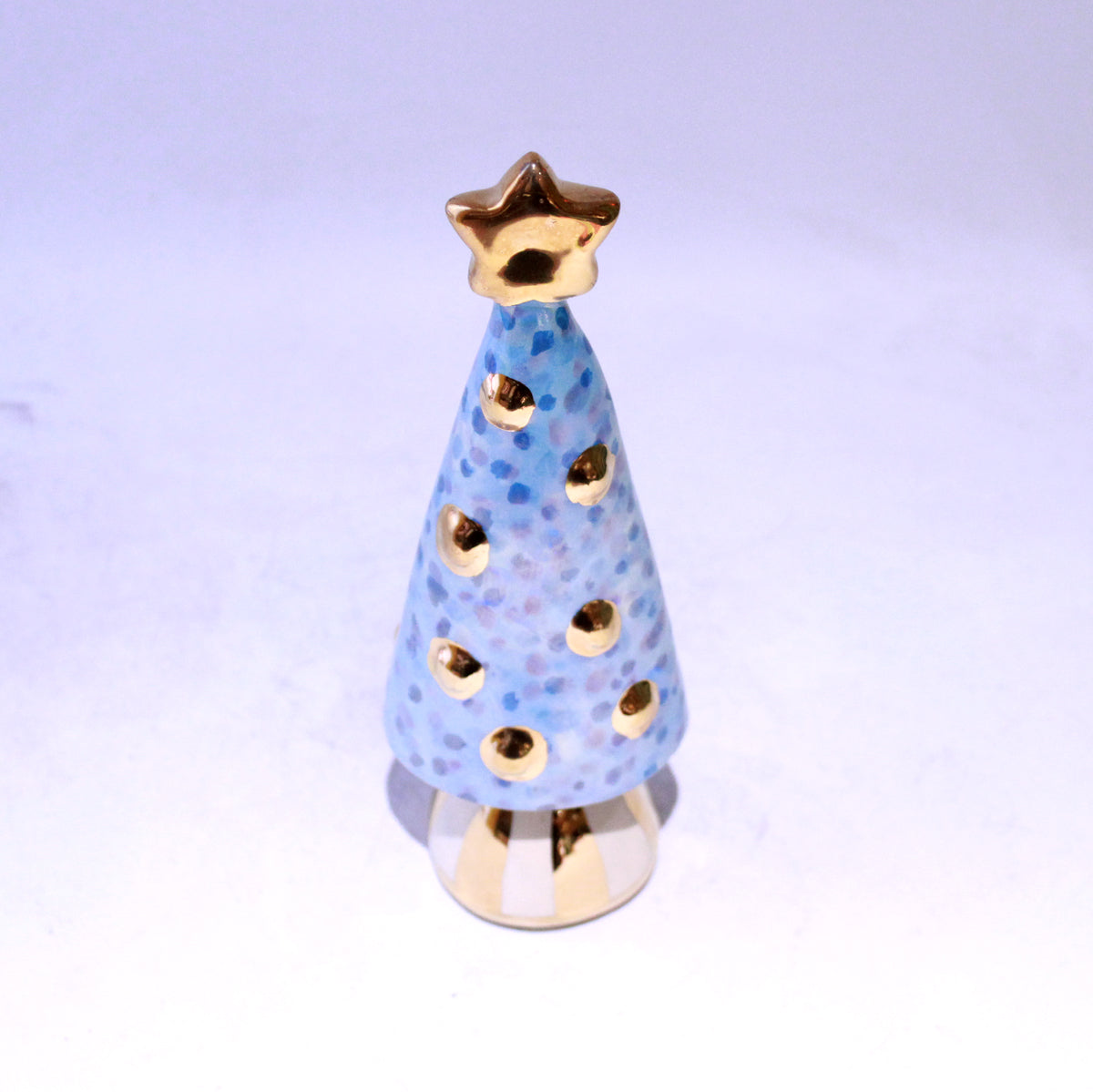 Small Christmas Tree in Blue Confetti with Gold Striped Base