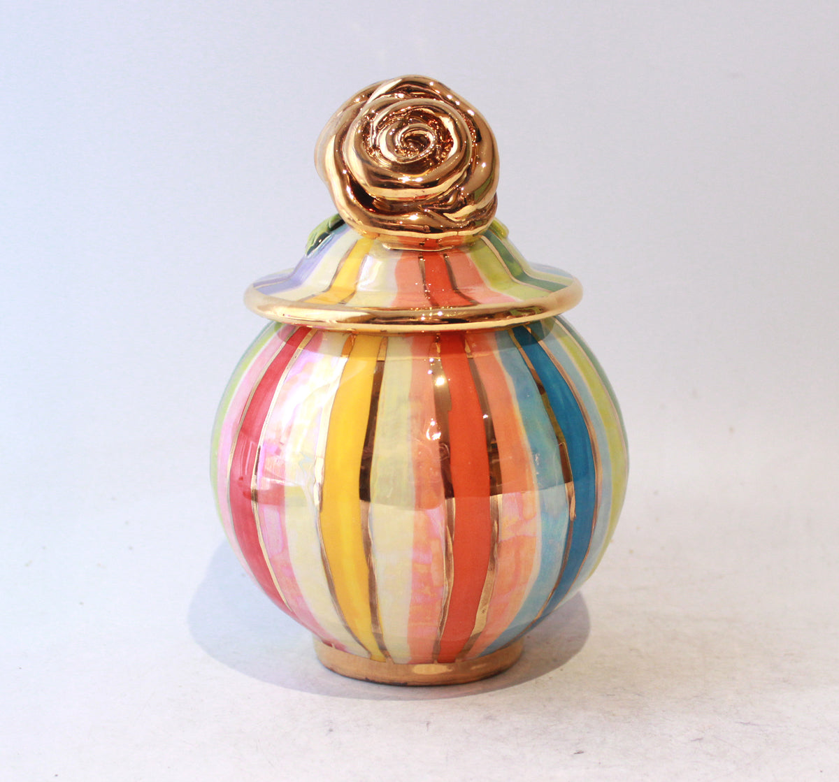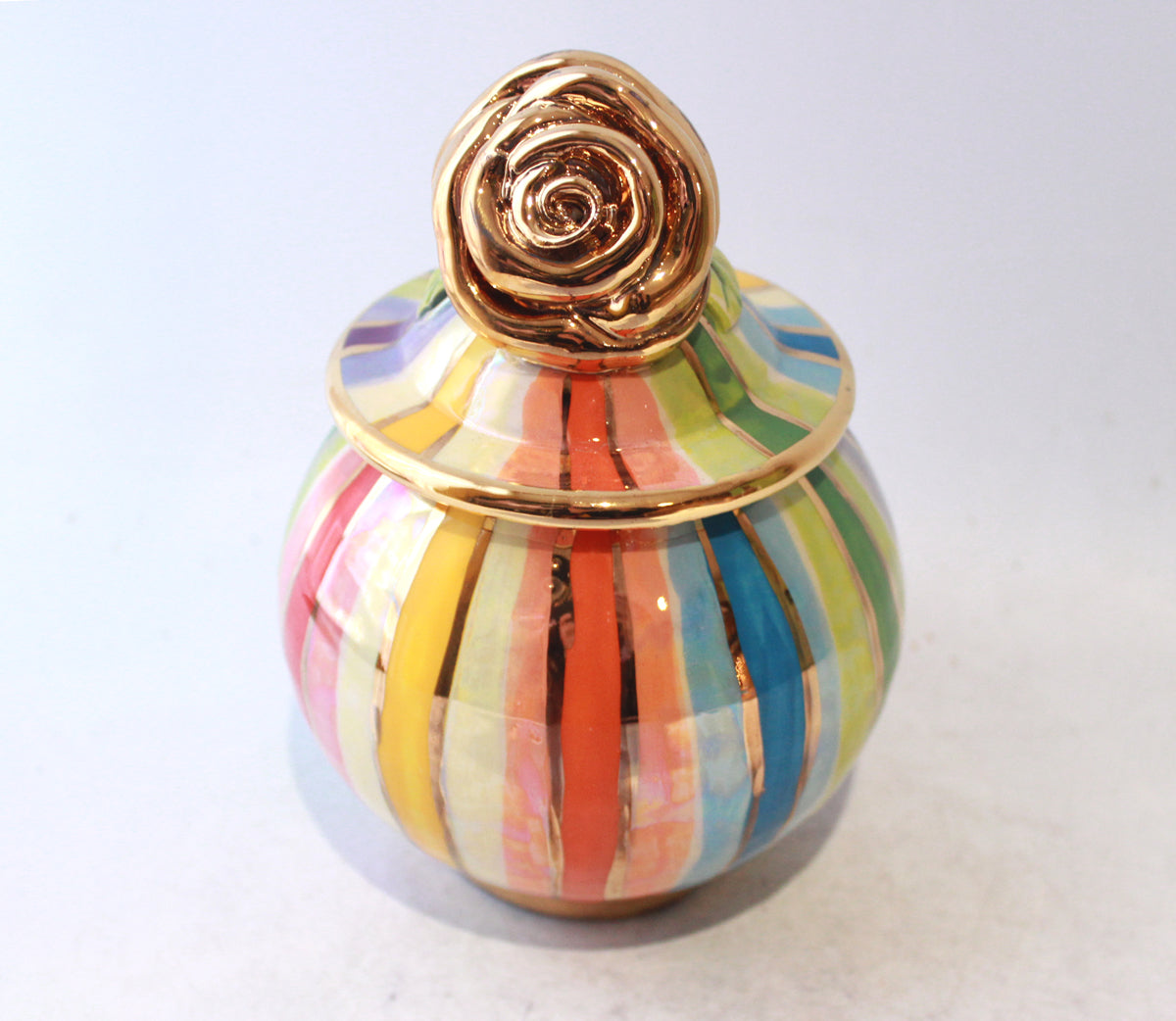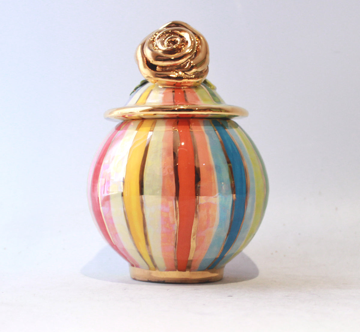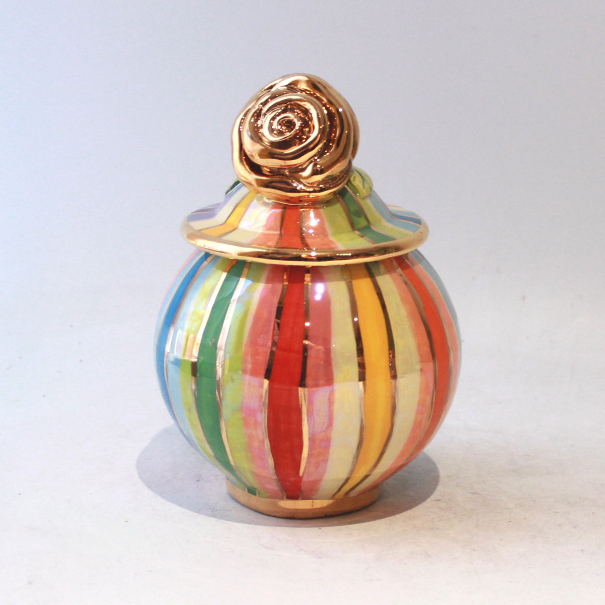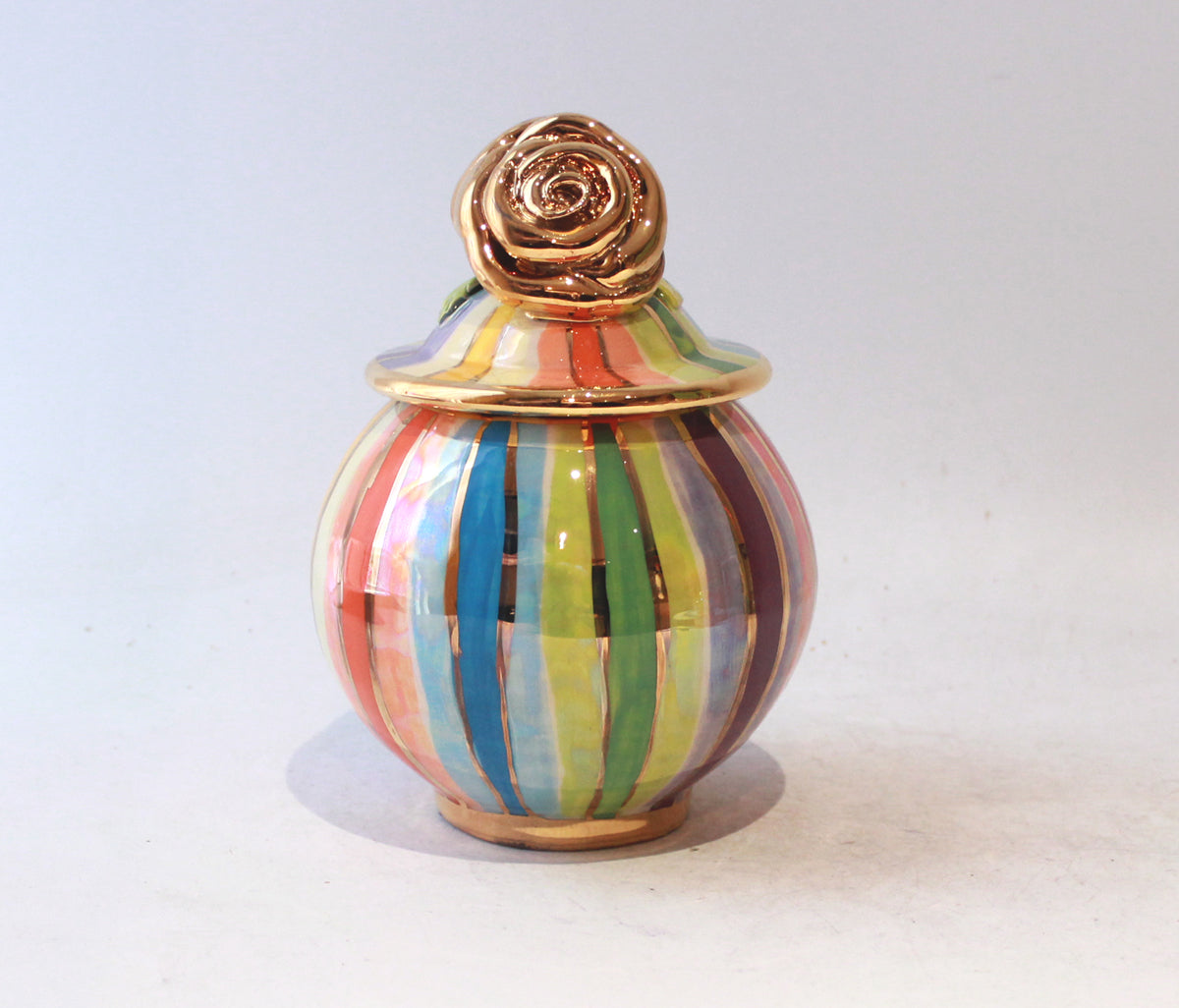 Small Round Rose Lidded Tea Caddy in Lustred Stripe