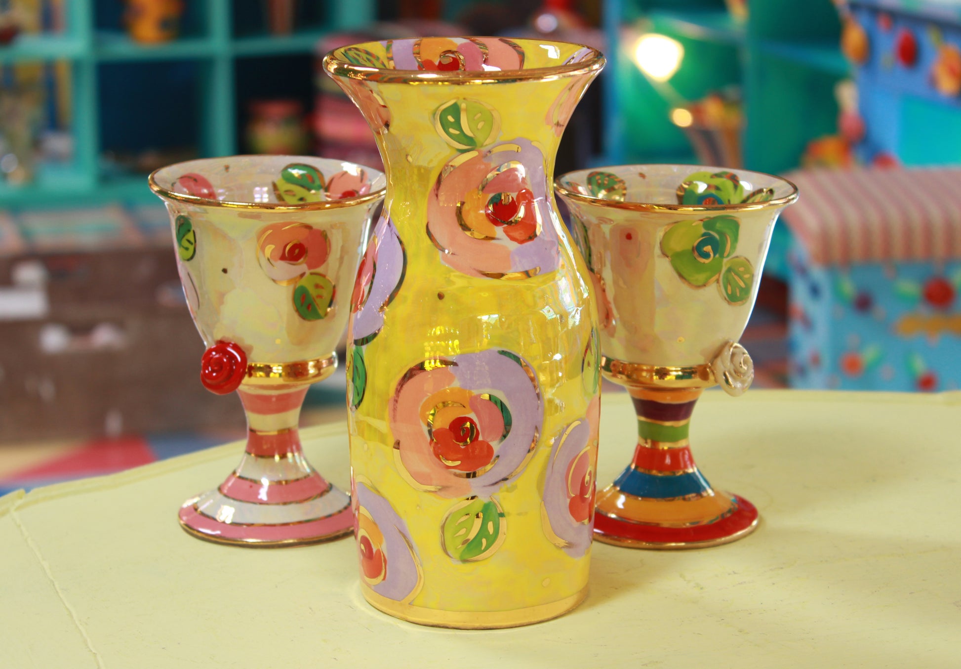 The perfect place to keep a bottle of wine! Because you just have to drink it. Mary Rose's Carafe is 8 inches high and holds in excess of a bottle. The shape is typically Mary Rose with lovely curvy lines and an exaggerated flaring lip at the top. It would go beautifully with Mary Rose's goblets of which there are plenty of examples elsewhere on this shop. If you'd like goblets to match your carafe just make a request in the comments section of the goblets when you order.